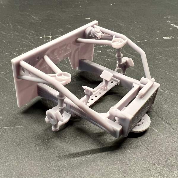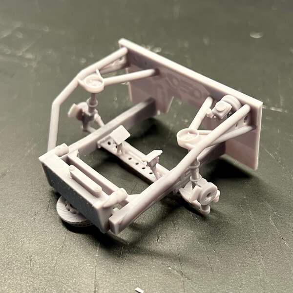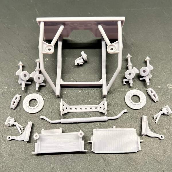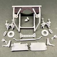 Includes: - frame- cross member- brakes (discs and calipers)- 2 engine mounts- a-arms- intercooler- radiator- and more... This is a universal/generic frame that can be used for a variety of builds. Please see measurements to ensure it will work for your project. Modifications may be need to make it fit your project s you prefer. Part will come attached to supports. Assembly instructions are not available. We encourage you to use the pictures in this listing for guidance. If you are not familiar with resin, please research before purchasing. As with all resin, this may need some work like sanding smooth, cleaning flash resin, evening out surfaces, filling pinholes, and/or fabricating parts. Bent or warped parts can be reshaped using the hot/cold water method. 11/8 Redesigned for a better fit.