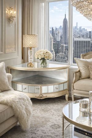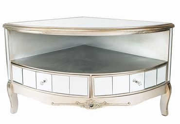 Le Buffet TV d'angle « Hollywood Glamour » combine un look luxueux avec une fonctionnalité pratique et s'intègre parfaitement dans les concepts de vie modernes, glamour ou d'inspiration Art déco.