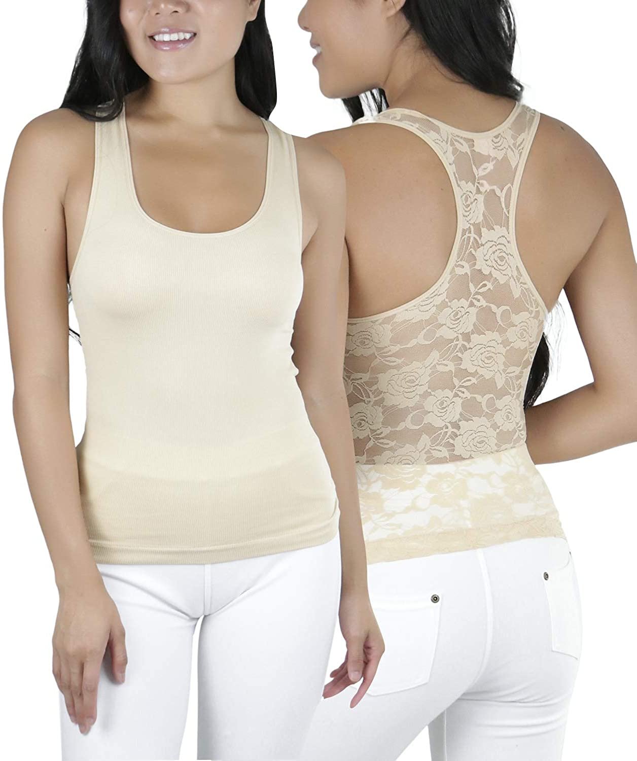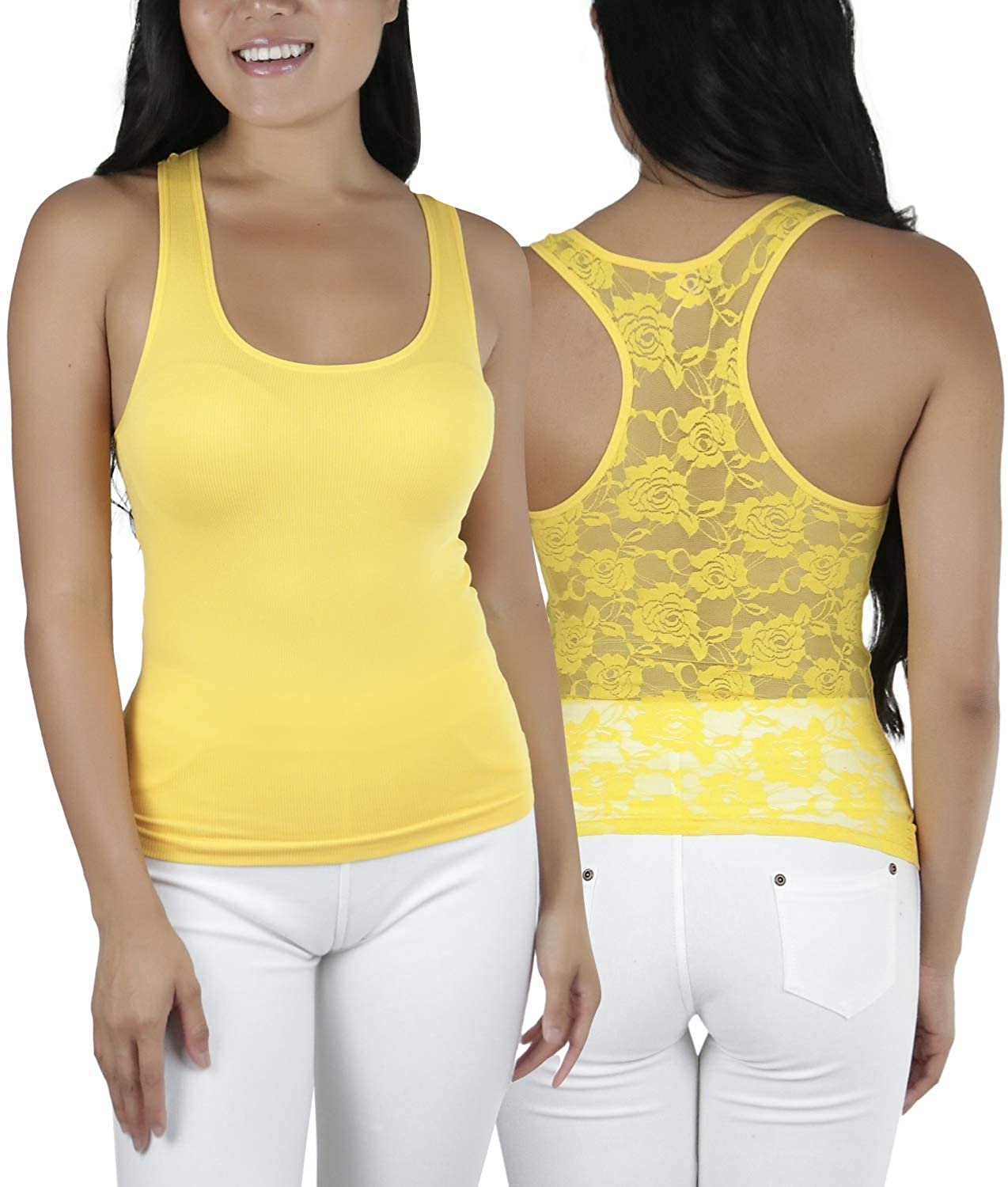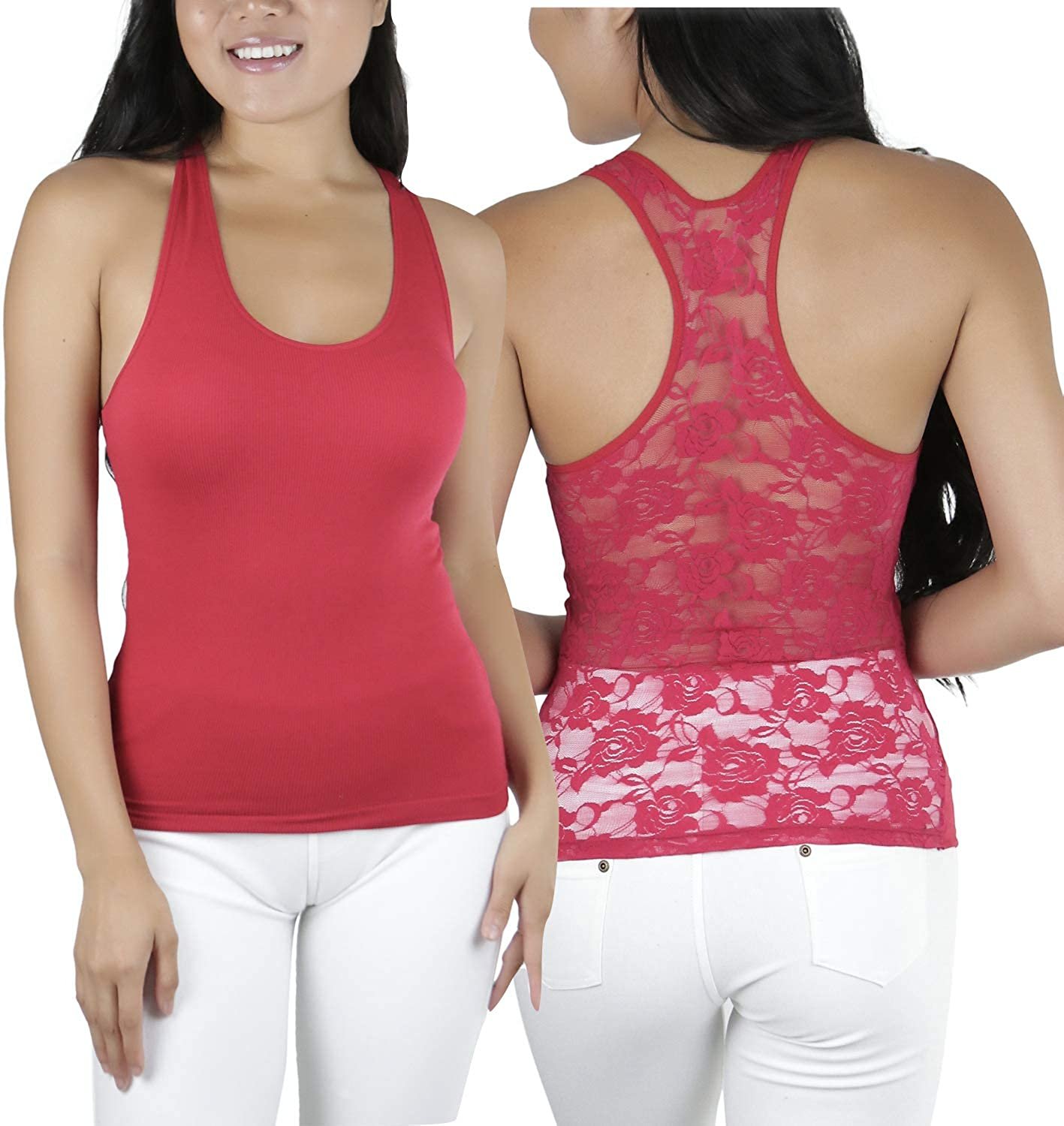 ToBeInStyle Women’s Seamless Lace Racerback Tank Tops