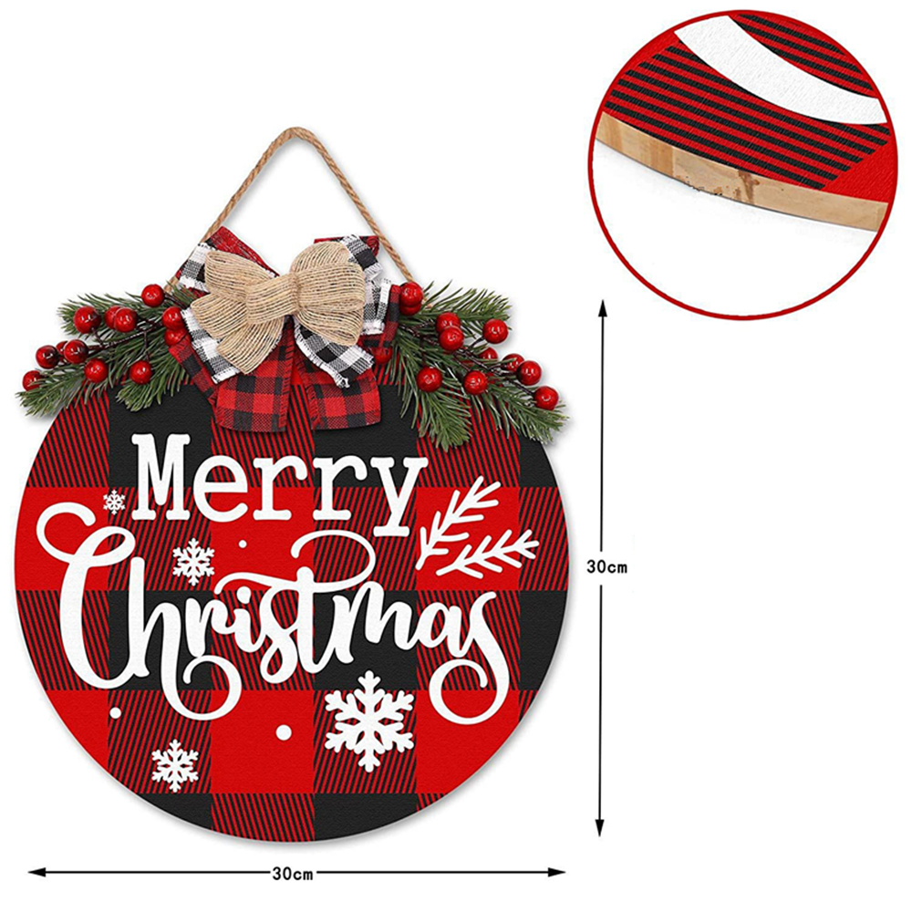 Merry Christmas Decorations Wreath, Merry Christmas Plaid Hanging Sign Rustic Wooden Holiday Decor for Front Door Porch Window Wall Farmhouse Indoor Outdoor Decorations (Merry Christmas)