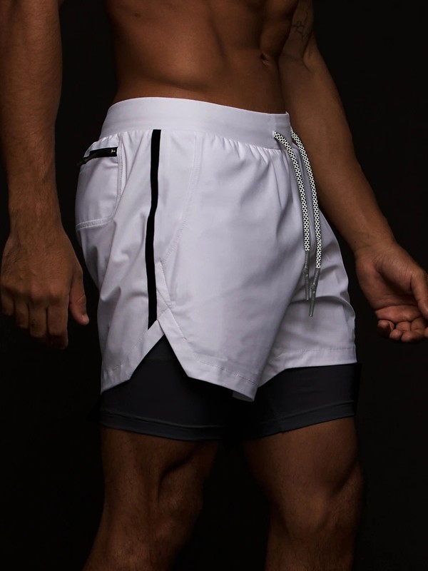 Mens Double Layers Athletic Shorts Quick Dry Pockets Drawstring Short Pants Basketball Sport Swim Trunks.
