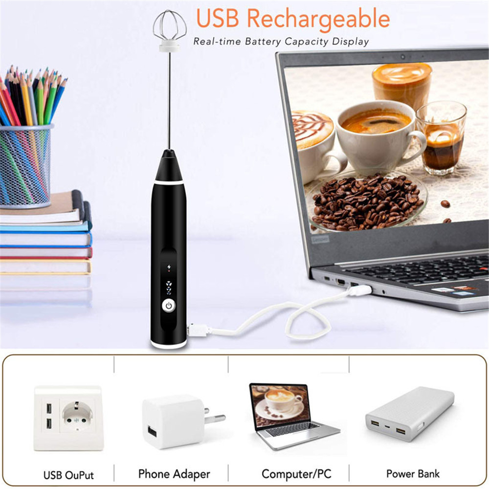 Electric Coffee Milk Frother Whisk Egg Beater USB Rechargeable Handle Mixer