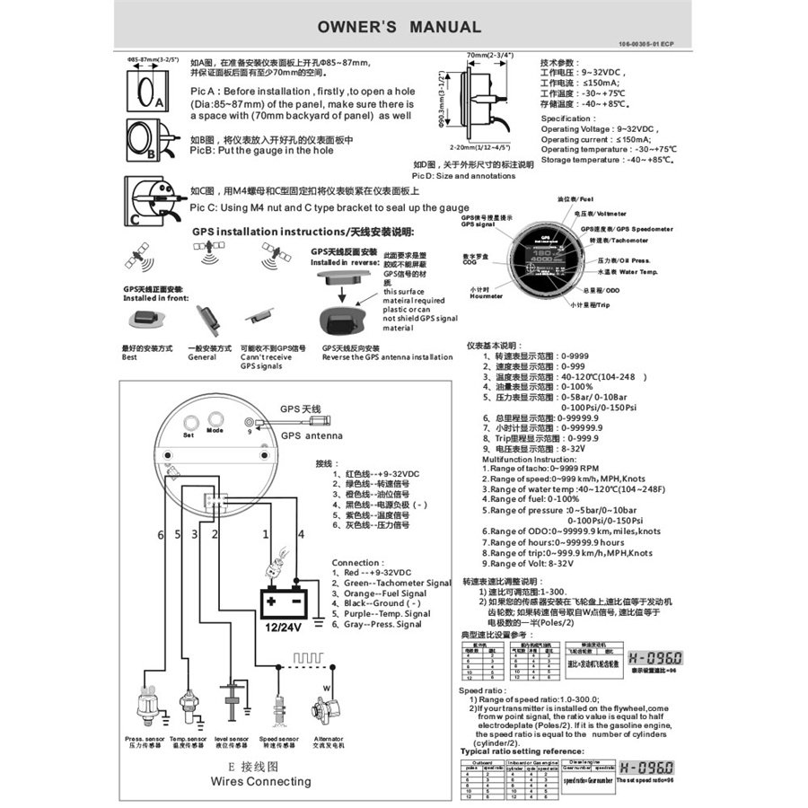 10.Be suitable for all kinds of speed sensors, and display the speed of vehicle or marine