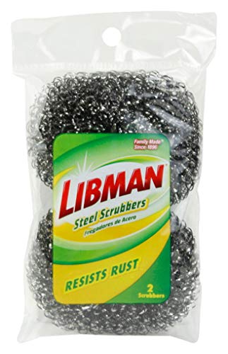 Libman Steel Scrubber are made from galvanized steel to resist rusting. They are excellent for removing grease & other tough messes. It can be used wet or dry & are great for cleaning any professional all-metal cookware without abrading the surface. Please note :