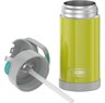 The Thermos 12 oz. Kid's Funtainer Vacuum Insulated Stainless Steel Straw Bottle with Bail Handle keeps drinks cold for up to 12 hours! Funtainer products are always made with love from BPA-free materials. The double-wall stainless steel construction is built to handle drops, dings, and assorted roughhousing. The integrated carry handle features a soft-touch grip, making it easy for carrying throughout the day, and can be folded down when not in use. The straw is removable for easy cleaning.
