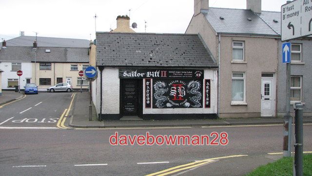 PHOTO SAILOR BILL COLERAINE TATTOO ARTISTS SHOP AT THE JUNCTION OF TAYLORS ROW AND LONG COMMONS. 2012 COPYRIGHT (Photograph and text in Extra Info) WILLIE DUFFINPHOTO PAPER THICKNESS NORMAL PHOTOGRAPH THICKNESS