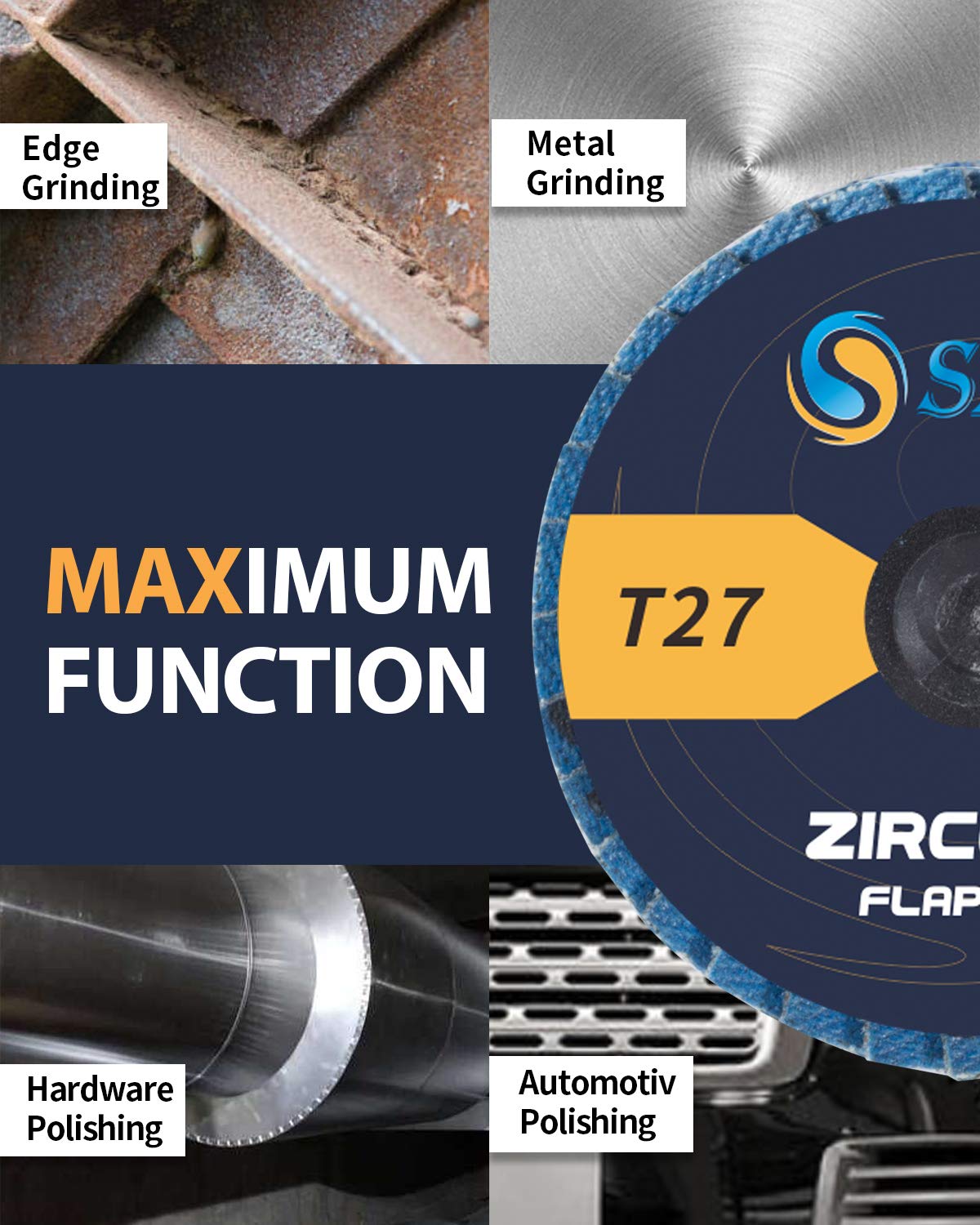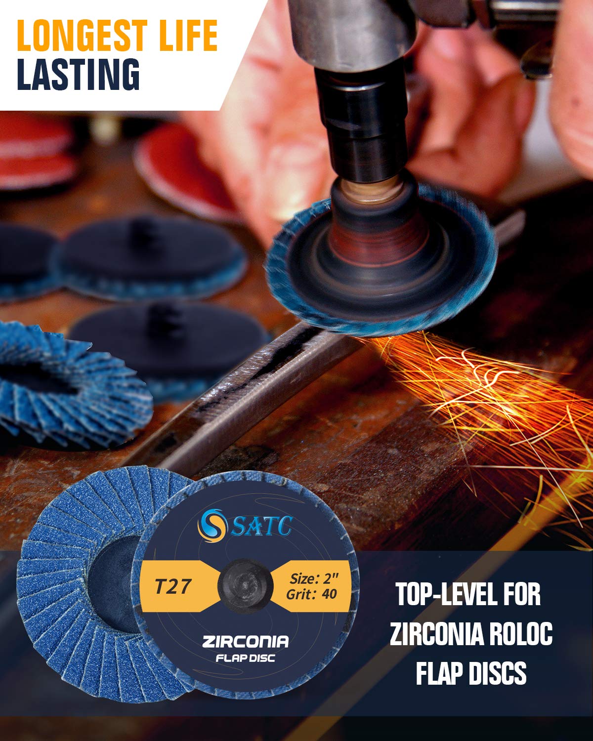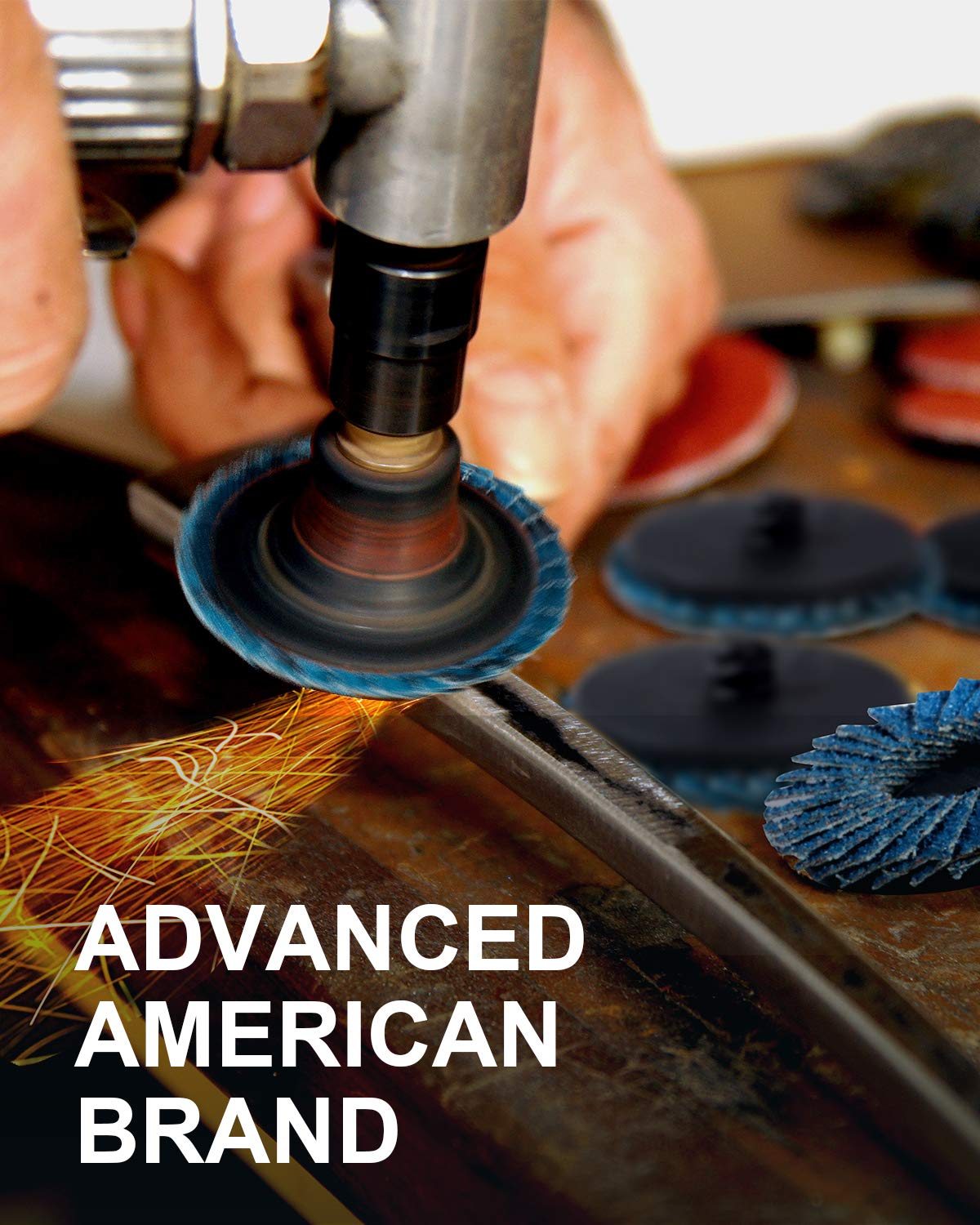 TOP-LEVEL Material: Roll lock Sanding discs are constructed of industrial grade high density premium zirconia and aluminum oxide grain,increased durability than standard flap discs, built for a more robust and economical grinding wheel.
