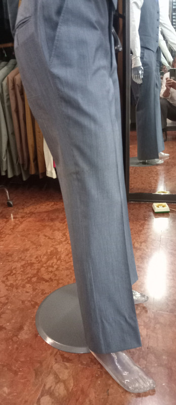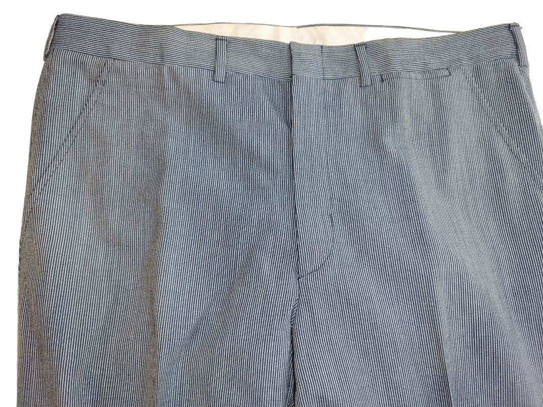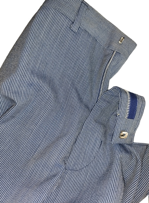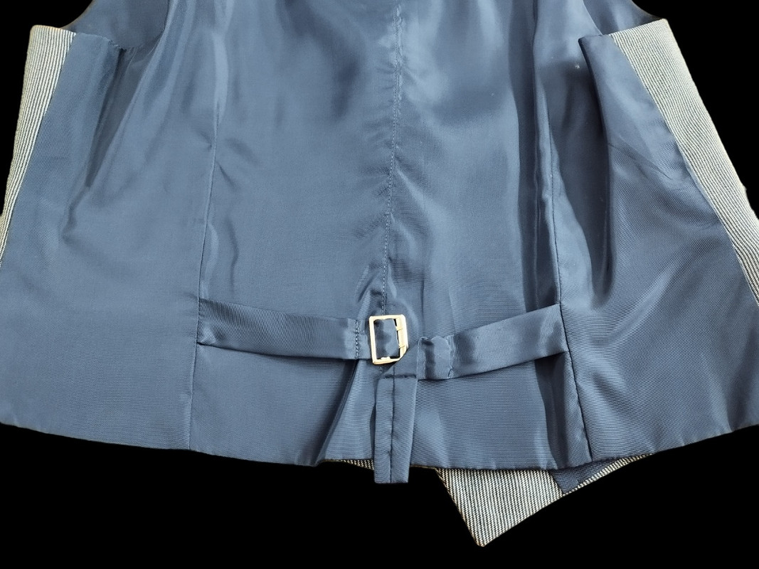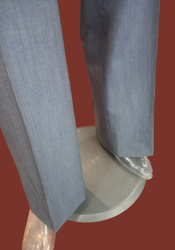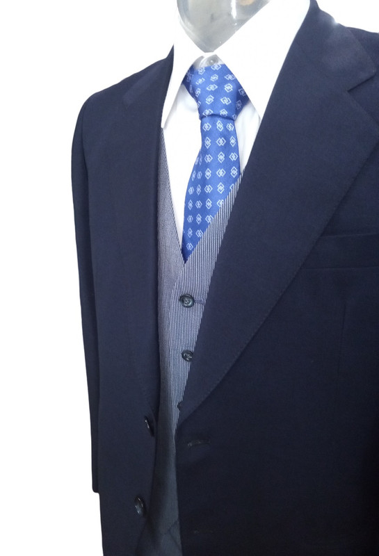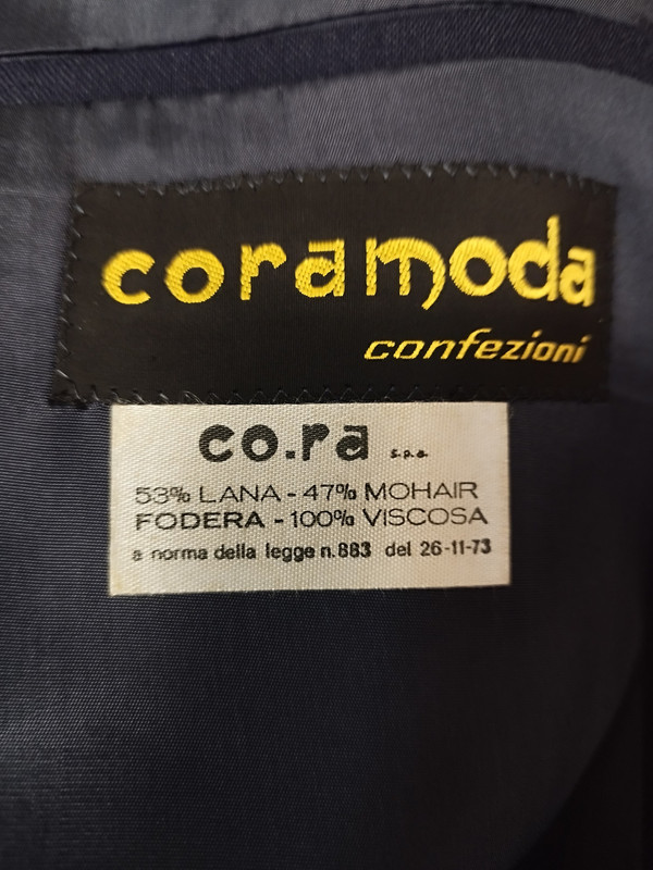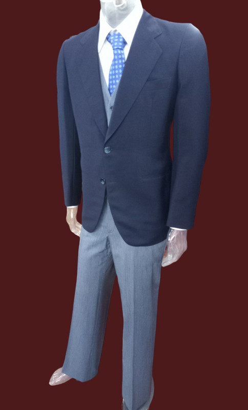 Exclusive men's suit, fabric originally defined as suitable for mid-weather wear, and which today could also be considered winter, especially in a mild climate or indoors; tailoring and finishing, available in size 50 (Italian) only, drop fit 6 - see the drop definitions below - three pieces (jacket, waistcoat and trousers, with the particularity of the waistcoat and blue-grey striped trousers and the plain blue jacket), combed wool fabric, original vintage (dating back to a period dating back to the end of the 1970s). The tie and shirt worn by the mannequin are not included in this offer. In the ebay gallery, in order to best present all the details of the item we have created the options for the individual pieces. Obviously the set is only sold as a complete set and we only have one. Composition of the pure wool fabric: Wool and Mohair (53% and 47%) for the jacket, 100% wool for the waistcoat and trousers (the linings are all in 100% viscose). Mohair is a textile fiber of animal origin with characteristics similar to silk, obtained from the hair of the Angora goat. Mohair fibre, thanks to its shine and length, is often used in the production of yarn mixed with wool. It is characterized by considerable length and particular softness. The fleece is taken through shearing and is spun differently depending on the age of the animal from which it is taken, since its characteristics change with aging. Coramoda® Made in Italy tag. Two-button jacket, single-breasted, classic chest, slightly wide lapels, classic pockets, lined, medium length (75 cm), straight back without vents. The measurements taken are shown in the photo and highlight a chest semi-circumference of approximately 50 cm, therefore perfectly in line with the size indicated on the label which provides a chest circumference of 100 cm. Shoulder width 43 cm, sleeve length 63 cm. Classic vest in fabric (same as the trousers) on the front and lining on the back, with strap to adjust the fit, classic pointed model underneath, two front pockets, fit consistent with the jacket. Trousers without pleats, lined, double classic back pocket, slightly diagonal side pockets, pocket on the left side (instead of the right as is used now), straight at waist closure without tape and with only a metal clip, medium height waist (approximately 25/26 cm, measured as the difference between the length between the crotch and the bottom of the trousers and the overall length of theitem ), slightly narrower thigh and wide "flared" elephant-bottom bottom (leg width at knee 25 cm, width at bottom 27.5 cm). waist circumference approximately 1.5 cm wider than the classic definition of drop 6. The trousers are already finished at the hem and also have the heel sewn in; It is finished with a length from crotch to bottom of 77.5 cm. Nothing takes away from the fact that it can be further shortened (or lengthened within the limits of the available internal fabric). There is also always a minimum amount of fabric at the back of the trousers if small further changes in width are needed - it's a simple tailoring process). A scrap of fabric of both fabrics of which the item is made is also provided. The trousers may have very small shadows at the creases but we have not detected any appreciable ones. However, keep in mind that it is an original item that is more than 40 years old! The item has its own retro charm and is in perfect condition and, in addition to being able to be shown off on particular themed occasions (look for vintage 70s shirts to match in our shop), you could consider the option of having the width of the leg trimmed by the tailor (strongly not recommended given the model) or it could also be used as a stage dress in television, theater or cinema productions. Link to the complete image gallery available upon request: The technical definition of Drop is very simple: it is the difference between the semi-measurement of the chest and that of the waist and serves to make the choice of a suit more balanced, personalizing the cut and improving the overall fit of the suit , both for the jacket and the trousers. We try to give an example that allows us to specific our drop specifically. In a subject who has a chest circumference of 100 cm, a waist circumference of 88 cm and a height of 176 cm we would have a result of Size 50 and Drop 6, therefore a regular build. How did we get there? The circumference of the chest is divided by 2 (therefore 100: 2 = 50, namely the size). Then, to calculate the drop, measure the difference between half the chest circumference, which, from 100, will therefore be 50, and that of the waist , which from 88 will therefore be 44. The result, 50 - 44, will be 6, therefore Drop 6. The drop 6 has a loose fit, suitable for men of medium build, and was considered the regular size par excellence until the 1990s. You can appreciate the details in details of the photos. Some made with Flash others without neon or warm light. Write to us for your requests for further specific measurements carried out on the items , for other photos, including detailed ones, and for any information that may be useful to you. We will reply to you within 48 hours at most (often on the same day). To better view the photos click on them, they will open in full screen. Shipping will take place within 3 working days via track and trace. Unique opportunity, unrepeatable price; items of shop, with certified quality and careful manual control over item itself before this is packaged and shipped. PUnable to request, before paying combinations combined with multiple objects, using the "Add to cart" functions and "Request the total to the seller". In this case we will provide a single tracking code and shipping costs will be calculated on the actual weight/volume of the package. Buyers from Abroad Should Always Write Us Before Purchasing to Set Effective Delivery Costs On Their Zip Code. We have a Lot of Promotional Delivery Rates to Many Places in Europe and Over. If