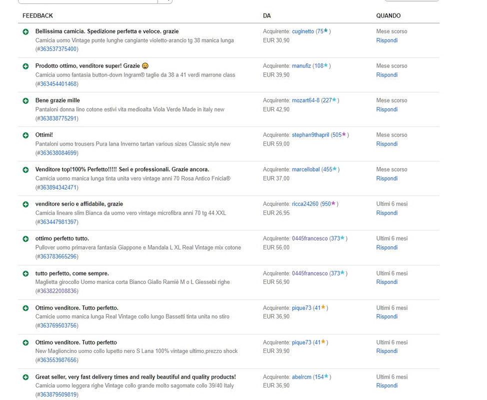 The delivery of the products will take place at the address provided by the buyer in the times and ways provided by the chosen carrier. It is advisable that you provide us with a telephone number to facilitate delivery operations for the courier (we are not responsible for any delays caused by the courier); The tracking code will be entered in the appropriate field provided by Ebay and starting from the day after shipping. When you receive the product, please test it immediately and inform us if everything is ok and if so, we ask you to release positive feedback to which we will reciprocate without delay. We do not take any responsibility for the losses of the objects after the delivery of the goods certified by POD provided by the courier or tracking on the relevant website. Prices The prices of the products displayed are including VAT. Payment must be made within 3 days following that of conclusion of the purchase. Privacy Policy With reference to the provisions of Legislative Decree 101/2018, containing provisions to protect confidentiality in the processing of personal data, we want to inform you that the personal data you provide, that is, recordings and/ or acquired in the field of our activity, can form the subject of processing with or without the help of electronic means, in compliance with the legislation referred to above, for the institutional purposes of our activity. Right of withdrawal Pursuant to article 5 of Legislative Decree 185 of 1999 and subsequent amendments, the customer has the possibility of withdrawing from the contract/order stipulated on the Internet, in compliance with the following conditions. The right of withdrawal lapses: - for lack of the essential condition of integrity of the good; - also partial use of the asset and any consumables; - the lack of the external package and/or the original internal packaging; - the absence of integral elements of the product (accessories, tags / labels, parts ...); - damage to the product for reasons other than its transport. In the cases indicated above, we will return the purchased asset to its expense. Customers who acquire VAT and those who buy personalized goods cannot exercise the right of withdrawal. In order to exercise this right of withdrawal, within a deadline of 10 (ten) working days from the receipt of the products ordered, the Customer must send to the address below a communication with a reception test. The communication must contain: - The manifestation of will to make use of the benefit granted by Legislative Decree. N. 185 of 22 May 1999; - the indication of the product (s) for the which (s) decides to make use of the right of withdrawal. To obtain the reimbursement of the consideration, the customer must, at his own expense, send back the products purchased to the address that will be communicated to you. Once the conditions mentioned above, the reimbursement will be verified. By clicking on the image you will open the updated page of feedback, even foreign ones, to prove the quality of the proposed objects! |