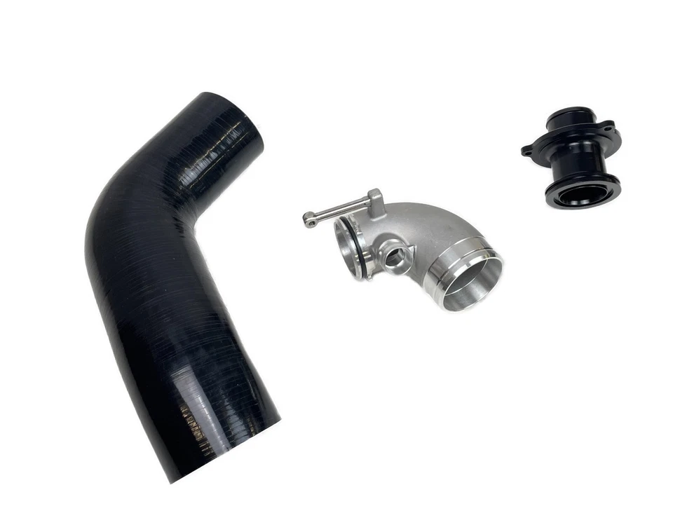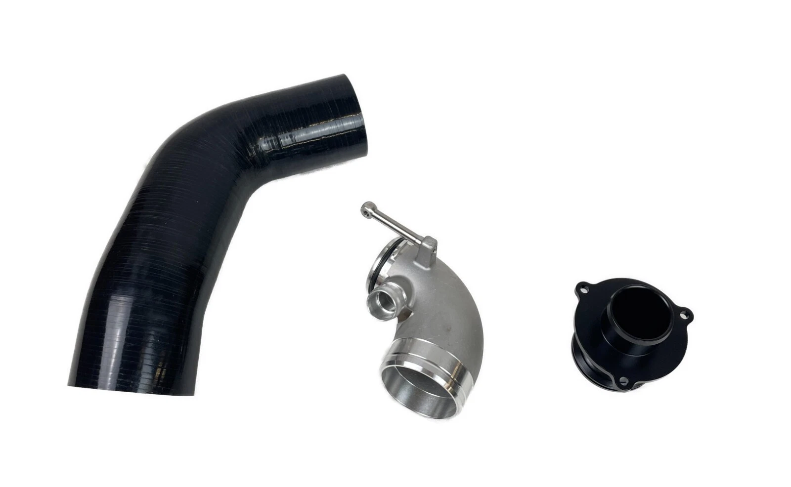 Serienmäßige Ansaugschläuche und das Inlet besitzen Engstellen am Turboladereintritt. Das führt zu Verwirbelungen und einem erhöhten Druckabfall vor dem Verdichter. Das optimierte Outlet ist im Gegensatz zum Serienbauteil gerade und ununterbrochen, wodurch der Durchfluss steigt und ein kerniger Turboklang entsteht.