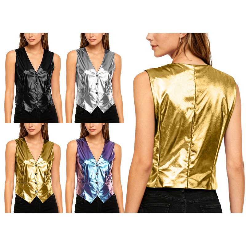 Womens Glossy U Neck Tank Tops Solid Color Sleeveless Crop Top Vest.