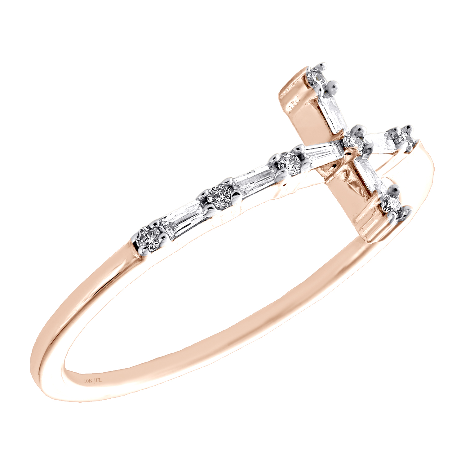 (1.3 grams of 10K Rose Gold | 0.12 carat total weight of white diamonds | Band Width (shank) - 8.50mm | I1 - I2 Clarity | H - I color | Women's diamond cross fashion ring)