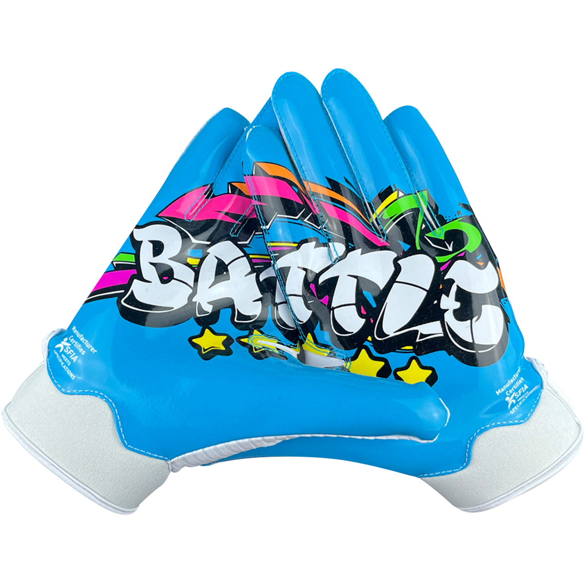 The Battle Sports Graffiti23 Doom Youth Football Receiver Gloves are made for football players who play hard and keep reaching. That is why Battle Sports designed them with newly reinforced stitching and wear points. It is also made with PerfectFit breathable material and Ultra-Stick palms that take you right to the legal stick limit. The proof is in your hands!