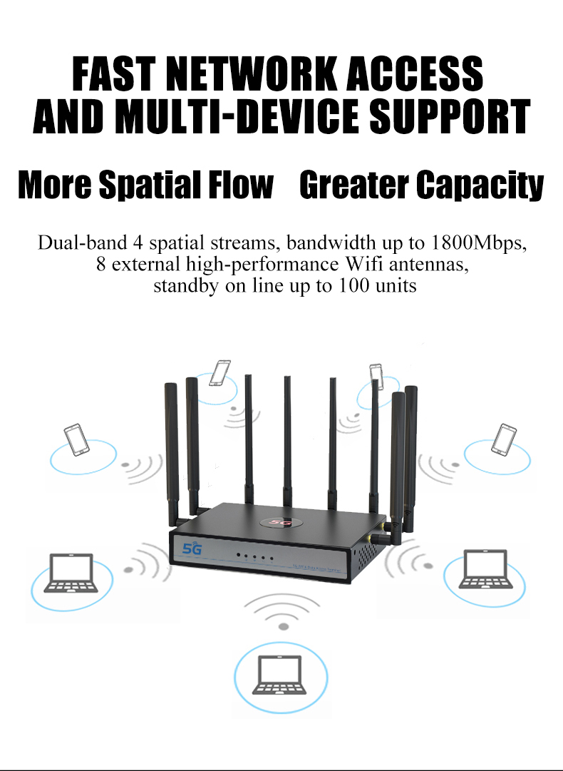 Dual-band 4 spatial streams, the CPE outputs 1800Mbps wireless bandwidth (600 + 1200), makes you