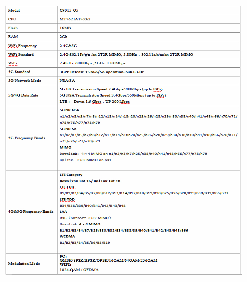 The CPE is compatible with NSA/SA dual-mode, suits to all network types all over the world, it means you