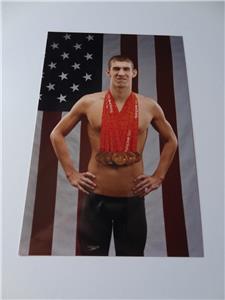 7 x 5 inch approx. gloss photo of legendary American swimmer (the most successful and the most decorated Olympian of all time with a total of 28 medals) Michael Phelps with his 8 gold medals won at the 2008 Summer Olympic Games in Beijing, China.