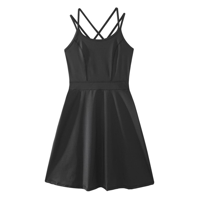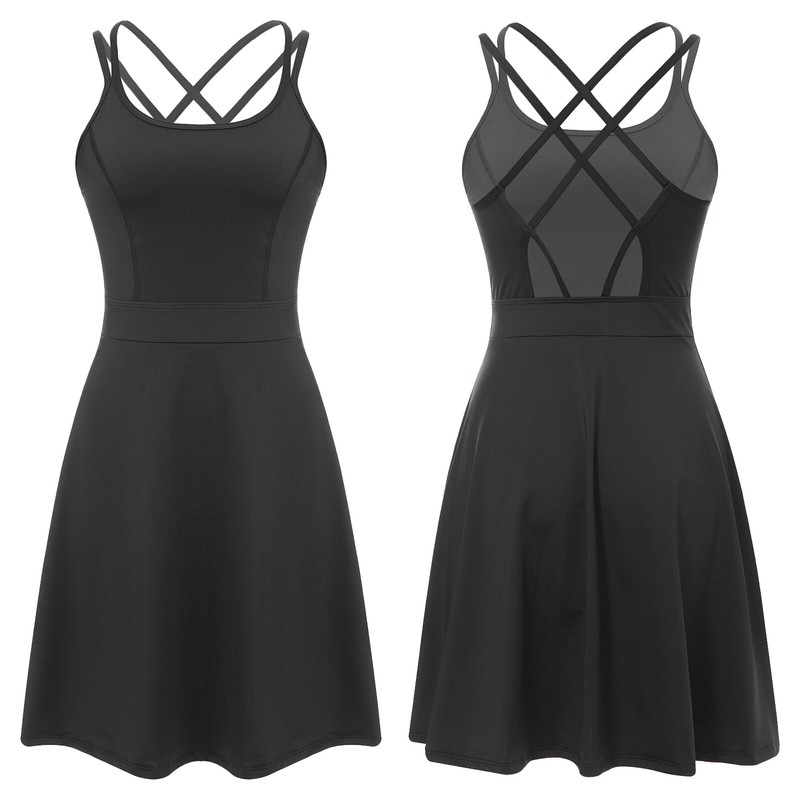 The women sport dress is designed sleeveless, open back, strappy back and above knee length.