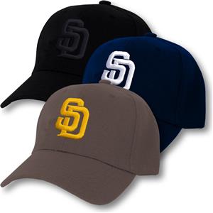 Various types of caps, Padres, MLB, & other logo apparel are also available