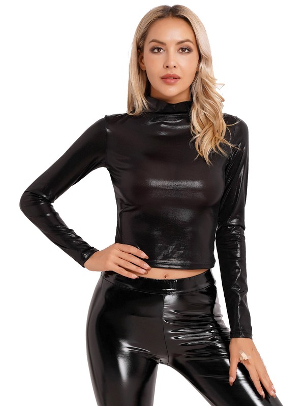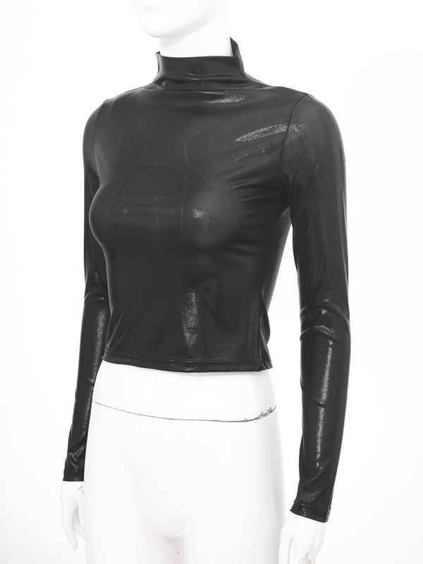 Metallic shiny t-shirt make you stand out in the crowd, it can better highlight your body with jeans, skirts, hot pants or leggings.