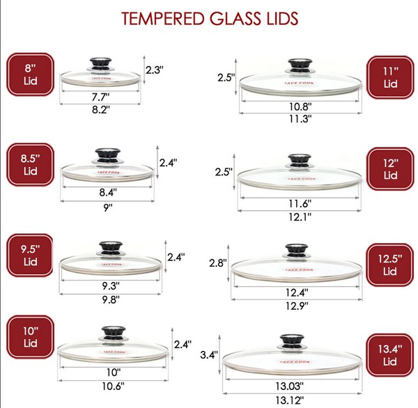 12"(30cm) Glass Pot Lid Replacement Cookware Tempered Glass Fry Pan Skillet Lid