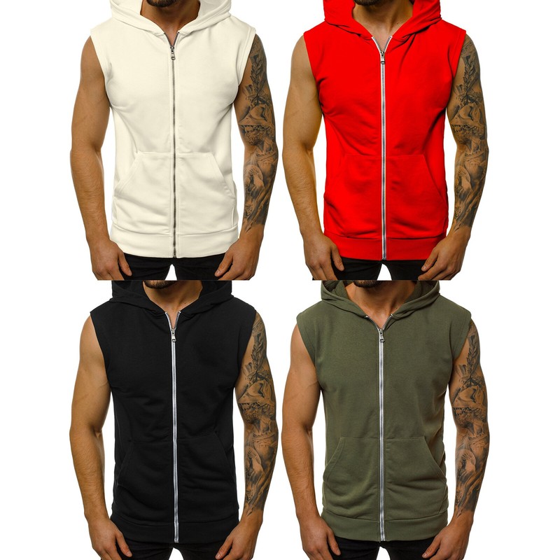 Solid color, front zipper, hooded design, sleeveless, shows your perfect muscle.