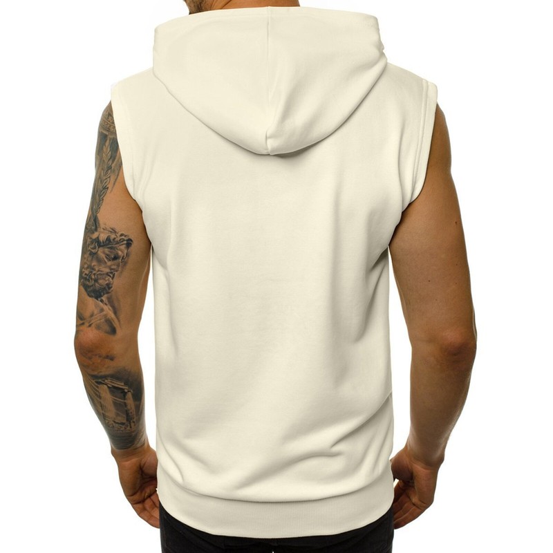 Mens Zipper Pockets Hoodie Casual Solid Color Sleeveless Hooded Sweatshirt.