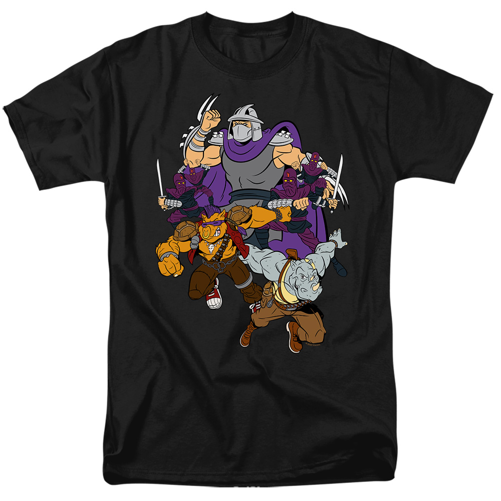 - Officially licensed and printed in the USA by Trevco. From the fan favorite TMNT, comes this black adult t-shirt. Sized for men in regular US sizing. Made out of cotton.