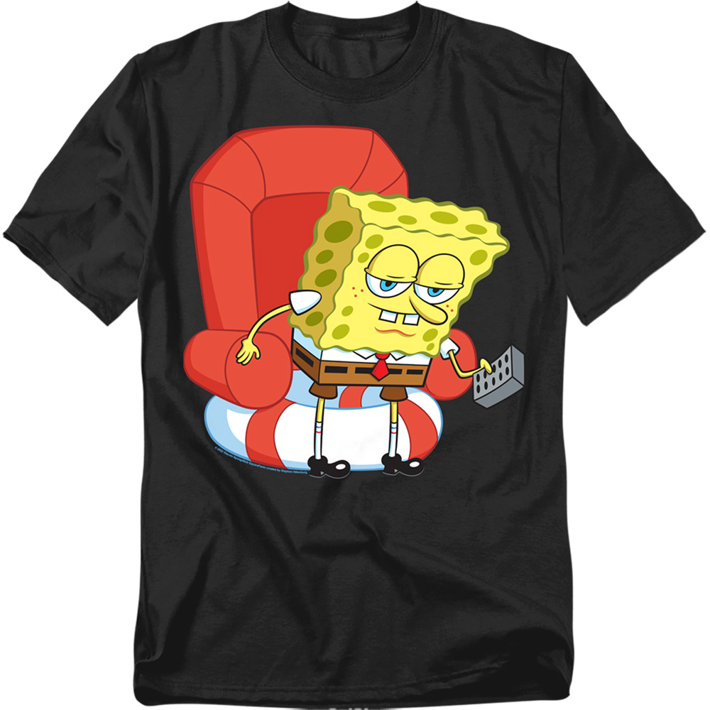 - Officially licensed and printed in the USA by Trevco. From the fan favorite SpongeBob SquarePants, comes this black adult t-shirt. Sized for men in regular US sizing. Made out of cotton.