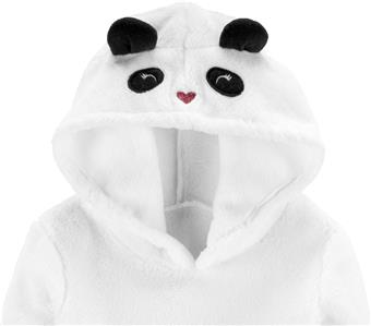 Cold days never looked so cute! This fuzzy pullover has a front Kanga pocket and an adorable panda face on the hood, with a pink glitter heart shaped nose, embroidered black eyes, and 3D black ears. The sleeves and hem have ribbed cuffs. The size 2T fits boys or girls 35” – 36.5” (88 – 93 cm), 29 to 31 lbs. (13.2 – 14.1 kg).