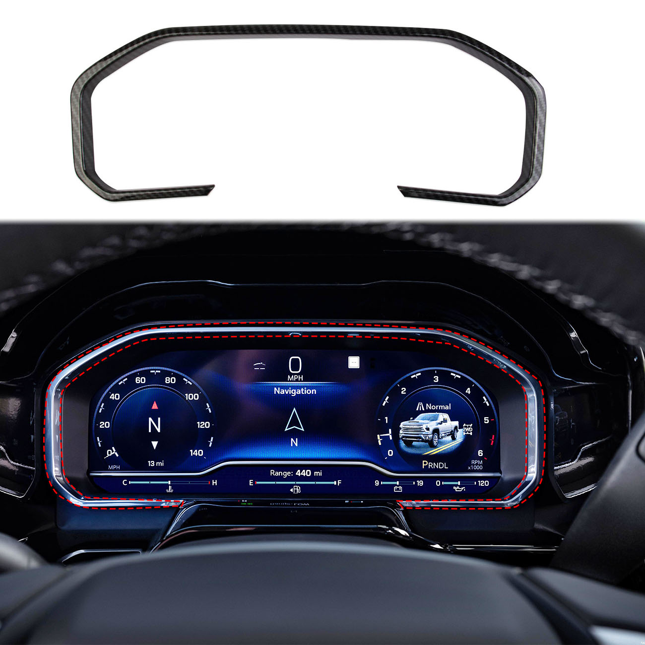 Carbon Fiber Style interior Dashboard meter Panel Frame Trim Cover For Chevrolet Silverado 1500 2022-2025 For Chevrolet Silverado 2500 3500 LT/LTZ/High Country 2024-2025 For GMC Sierra 1500 2022-2025 For GMC Sierra 2500 3500 Accessories