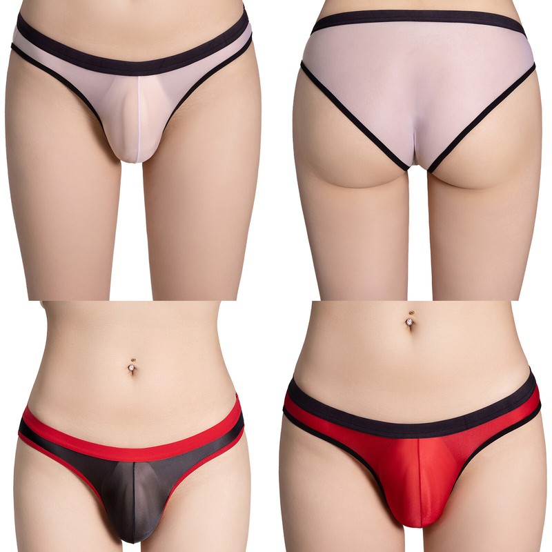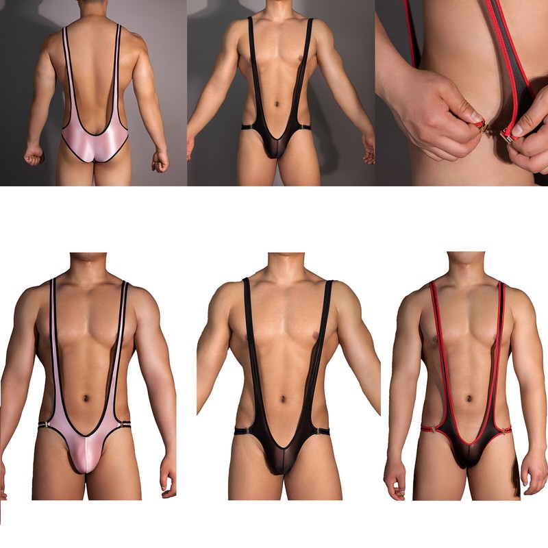 Glossy appearance, low waist briefs with drawstring waistband for better fit, zipper closure.