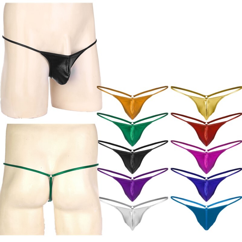 Mens Drawstring Low Waist Zipper Briefs Wet Look Patent Leather Underpants Underwear.