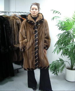 MAGNIFICENT DEMI BUFF & DARK RANCH MINK FUR COAT LADIES...CREATED WITH QUALITY AND SELECTED MINK FUR PELTS ... REFURBISHED AND RECYCLED INTO THIS FASHIONABLE STYLE....COMPLETED WITH WING FUR COLLAR AND TUXEDO FRONT...A GORGEOUS DEMI BUFF MINK FUR COAT ACCENTUATED WITH STUNNING DARK RANCH & DEMI BUFF INTERVENED TRIM AROUND THE COLLAR, TUXEDO FRONT, SKIRT AND CUFF FOR DESIGN. AFTER BUYING THIS ITEM, PLEASE PROVIDE YOUR BODY MEASUREMENTS SUCH AS HEIGHT, WEIGHT AND BUST CIRCUMFERENCE AND SLEEVE LENGTH(MEASUREMD FROM SIDE/BOTTOM OF NECK TO 2" BELOW THE WRIST).