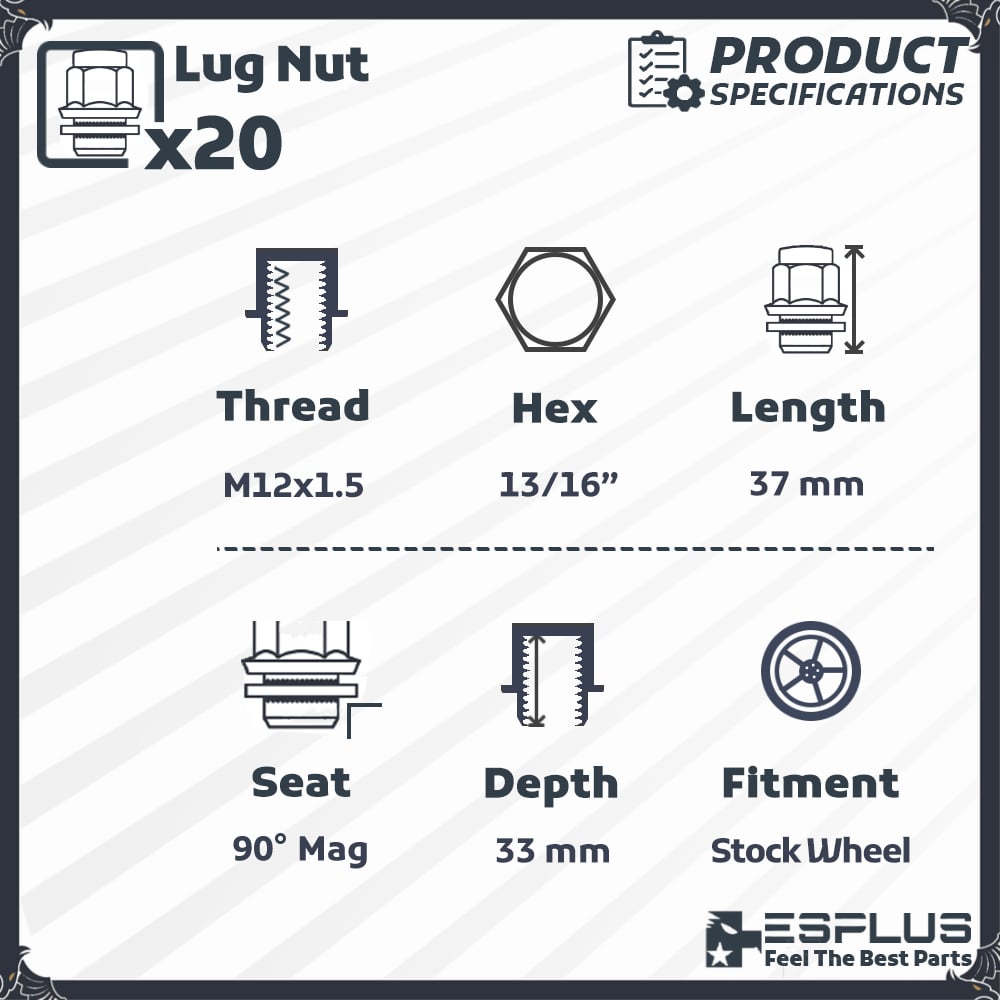 Following chart is designated for Thread Pitch check only. Due to aging, your studs may have been changed. Please compare the shape and thread mark with your existing lug nut before buying.