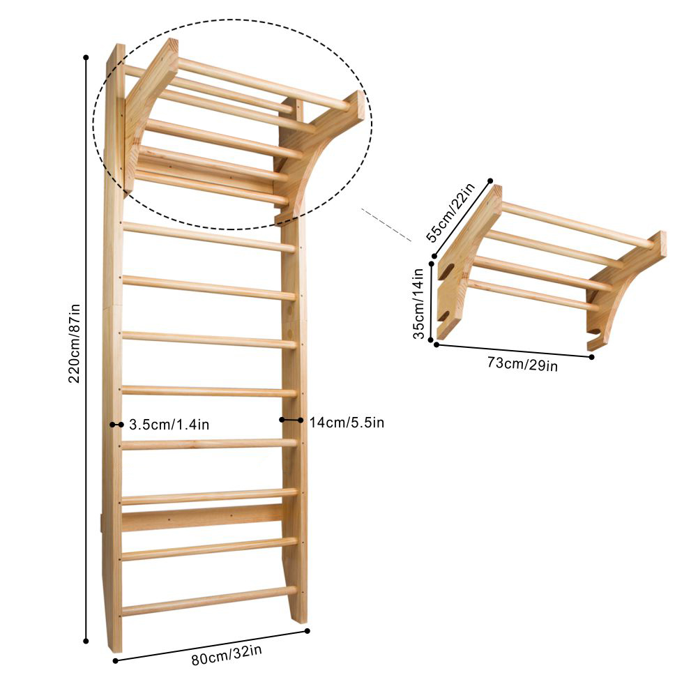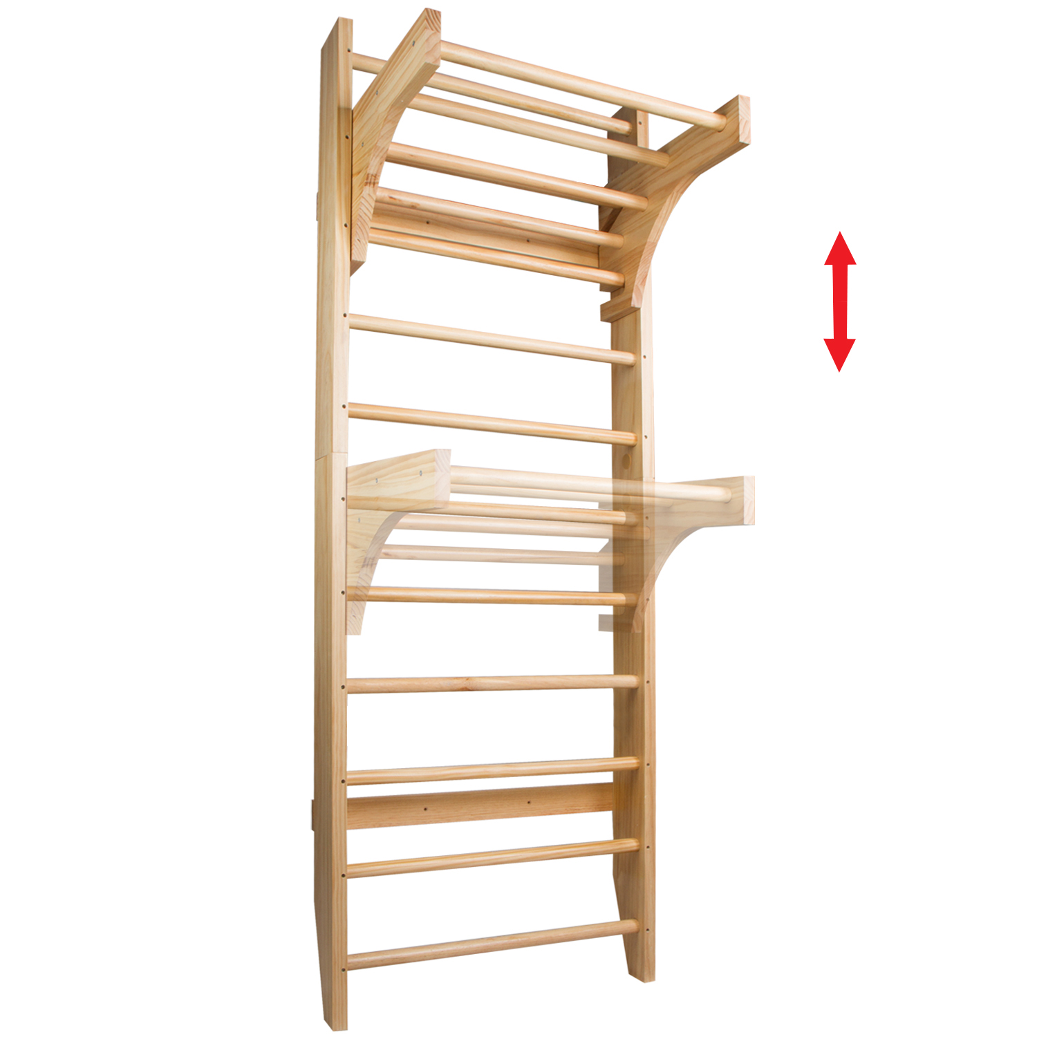 - STABIL & FLEXIBILITÄT - Besteht aus hochwertigstem Kiefernholz. - Die Höhe des obersten Aufhängers ( Klimmzugstange )kann man auch verstellen