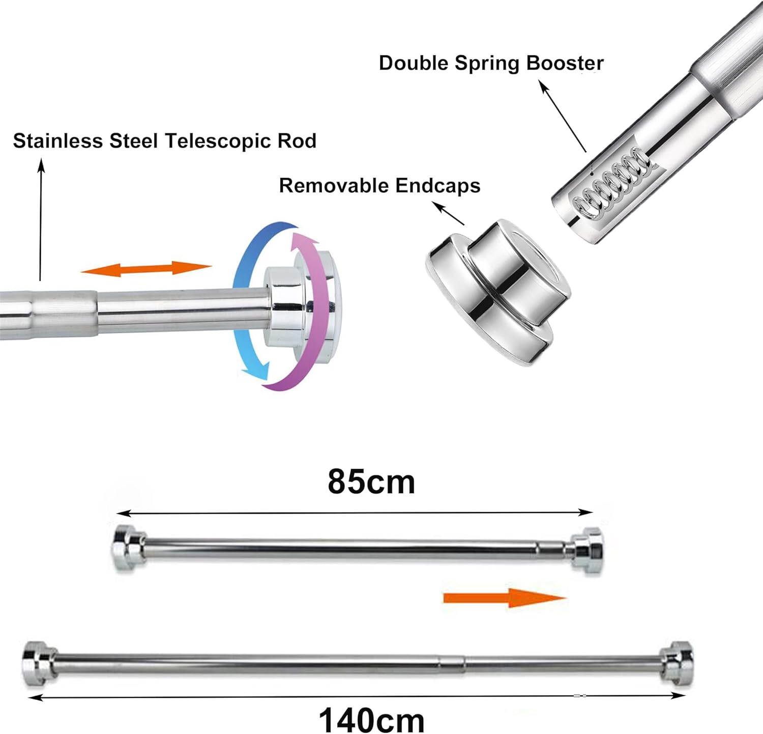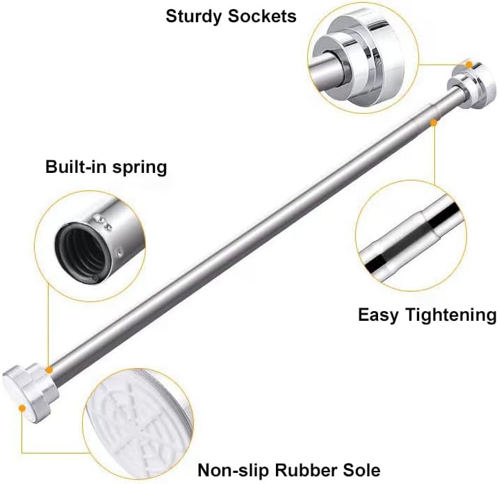 Description: Heavy Duty Extendable Telescopic Shower Curtain Pole Rail Rod Bath Door Window Features: - Robust Material: Crafted from polished stainless steel tubes, these shower curtain rails are engineered for exceptional durability and strength. They undergo a waterproof coating treatment, ensuring resistance to rust, corrosion, and effortless cleaning, thus guaranteeing reliable performance even after extended usage. - Effortless Installation: No tools, screws, holes, or drilling are required for installation. The rod is adjustable to fit snugly between opposing shower or tub/shower combo walls, with sizes ranging from 55-85cm, 85-140cm, 105-170cm, 125-220cm. All you need are two opposing walls to secure the rod, and simply twist the ends in opposite directions to extend or ...