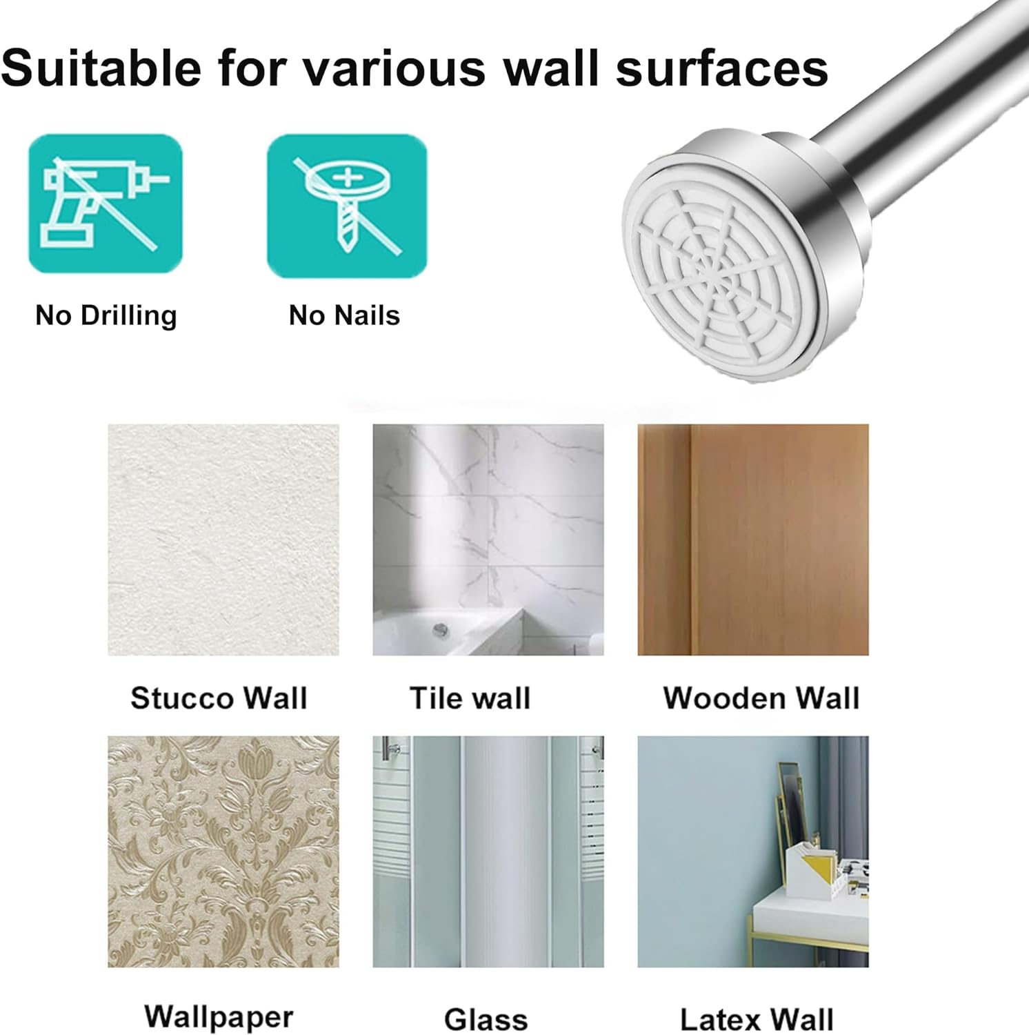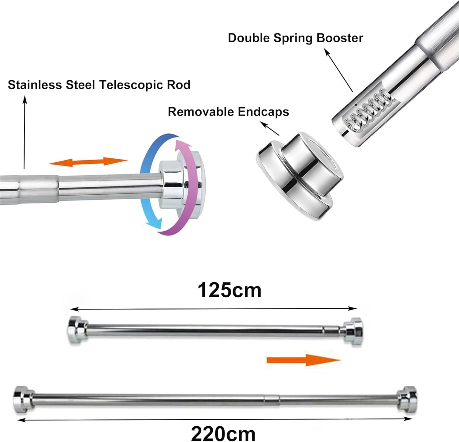 - Effortless Installation: No tools, screws, holes, or drilling are required for installation. The rod is adjustable to fit snugly between opposing shower or tub/shower combo walls, with sizes ranging from 55-85cm, 85-140cm, 105-170cm, 125-220cm. All you need are two opposing walls to secure the rod, and simply twist the ends in opposite directions to extend or shorten its length.