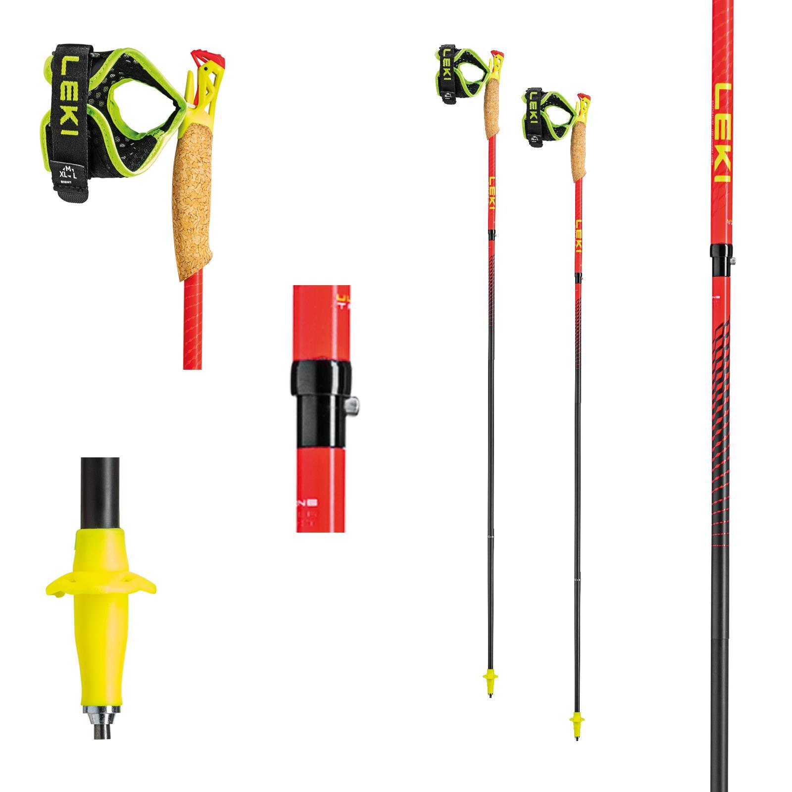 Das Verstellsystem arbeitet mit einer Außenklemmung, die ein einfaches Verstellen ermöglicht und maximale Haltekraft bietet. - Spitze: LEKI DSS Tip, gefederte Ersatzspitzen 14 mm (Dynamic Suspension System)