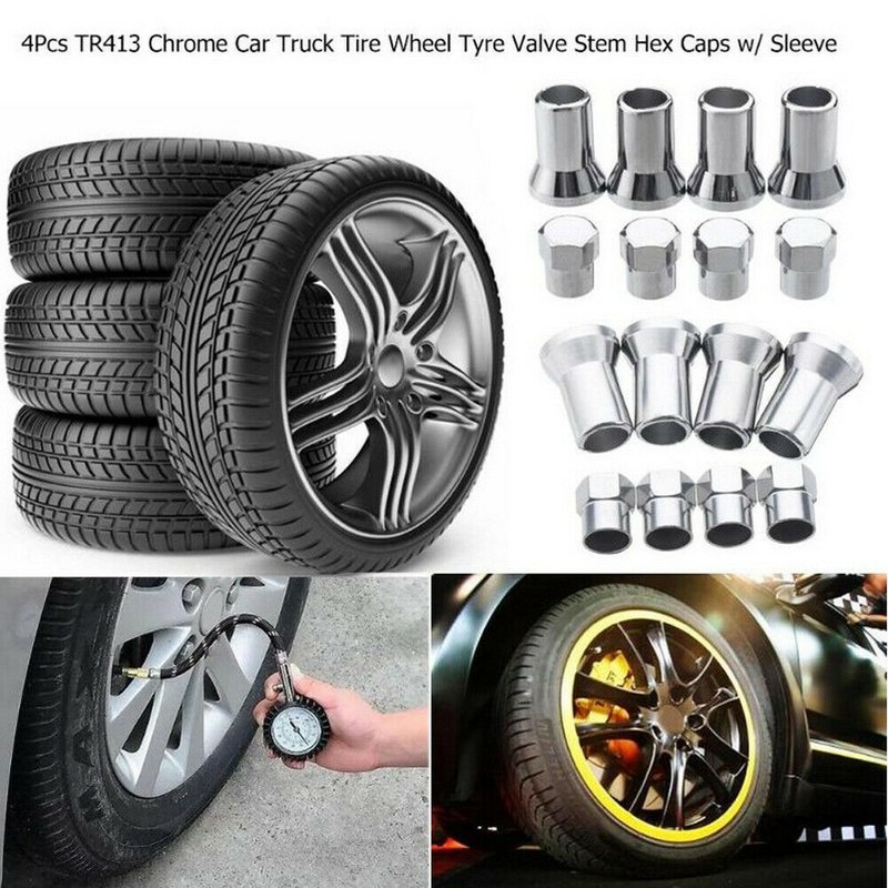 Car Accessories Chrome Car Tire Wheel Rim Valve Stem Cap Cover +Sleeve Universal