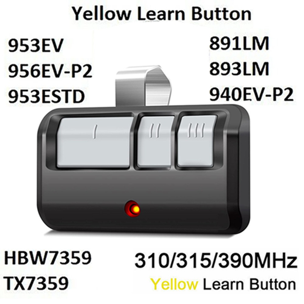 3-BUTTON Garage Door Remote For YELLOW LEARN BUTTON