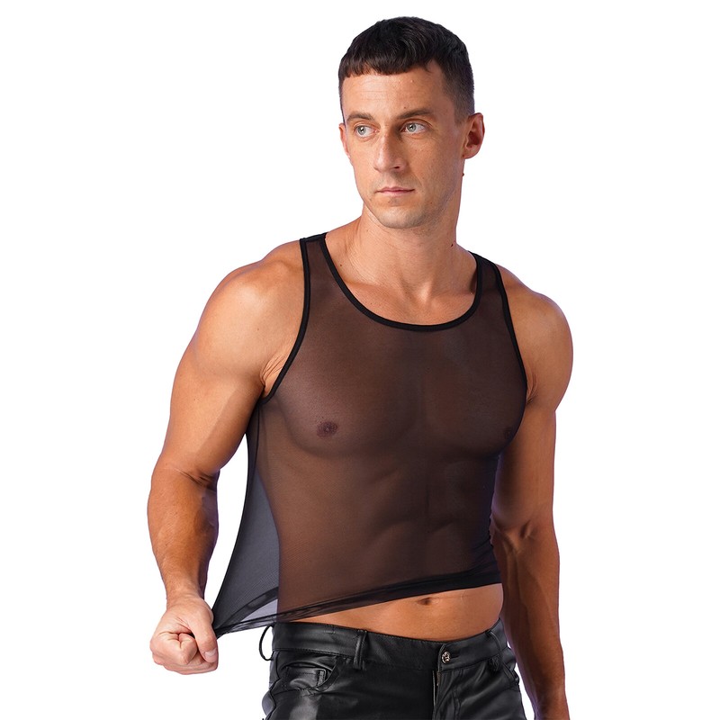 Sleeveless tank top for men, u neck, see-through design brings different visual experience, shows your muscle and robust body.