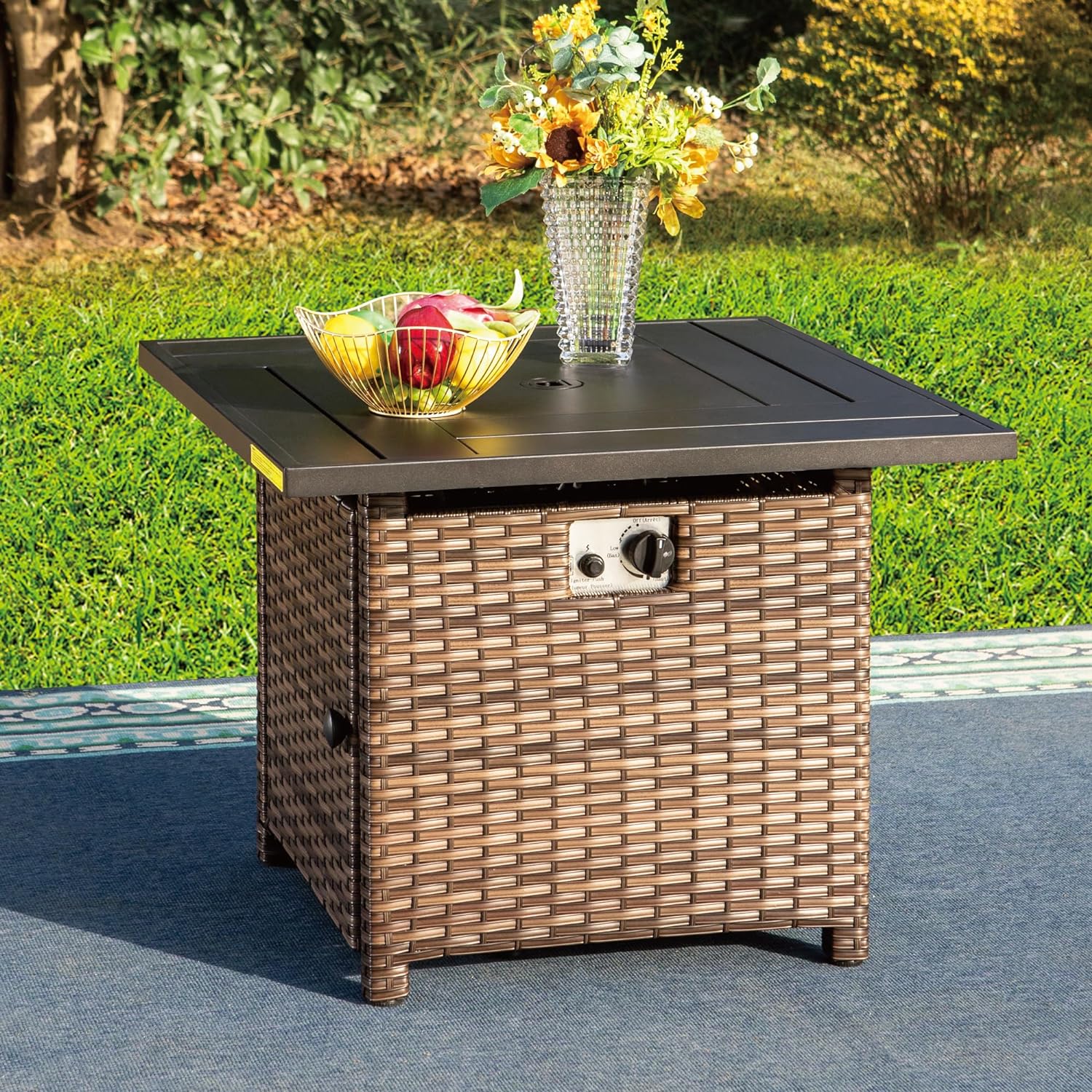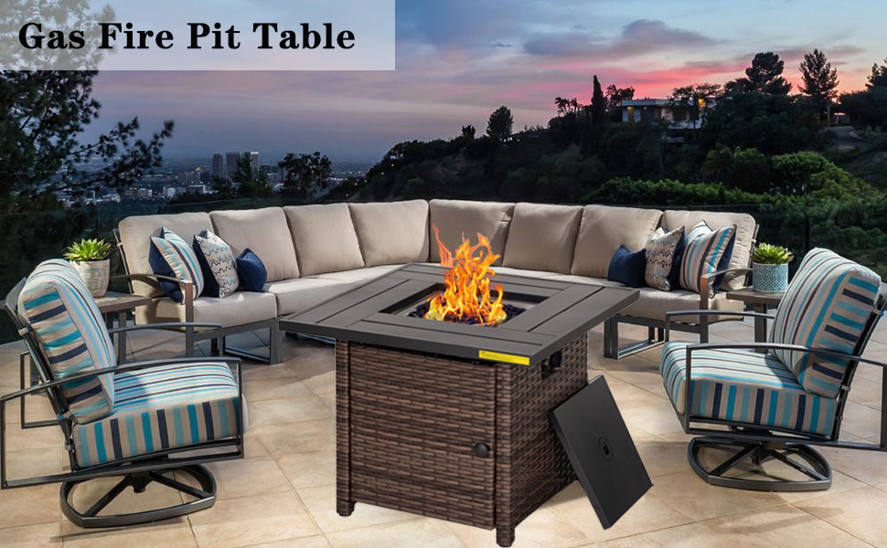 Description: 🔥Large Size : 32''L×32''H×25''W 🔥Color: Brown 🔥Material: Stainless Steel 🔥Fuel Type: Liquid propane 🔥Healthy Use: Cleaning burning 🔥BTU: 50,000 🔥Guarntee: 1 Year ; CSA certified Feature 🔥High Quality: Our gas fir pit table comes with quality stainless steel burners and fire bowls to ensure outdoor durability,and are protected by multiple process heaters that keep the top from getting hot when in use. 🔥2-in-1: The 2-in-1 fire pit table with steel lid easily converts to an outdoor dining table,coffee table,or casual bar when burning without a fire pit with the provided lid. 🔥Healthy Use: Our table provides a steady and clean burn with no ash or smoke.Sitting around the fire pit in the evening, gazing at it,and enjoying the company of friends is something everyone loves to do. 🔥Warranty: We offer one year warranty. If you have something need help,please contact us and we will deal with it within 24 hours. Note: Do not use indoors when ignition is on. Packing List: