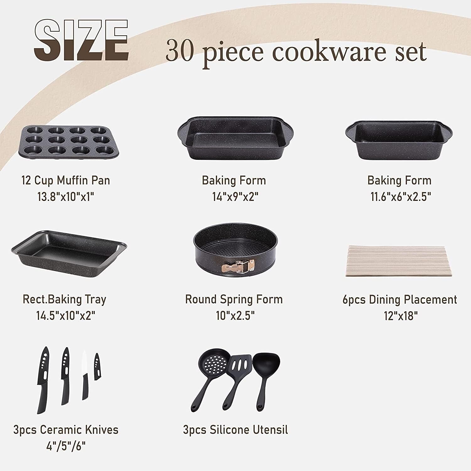 ![]() PaymentWe can Accept PayPal, Payoneer, Google Pay, Visa, Master Card, Amex and Discover. About UsWelcome to our eBay store. We sale products about Home Garden,Home Organization,and Office Products. We are committed to your good buying experience from us. If you meet some problems or further questions,even some dissatisfaction with us,please give us a chance to solve the problem and offer you the best service,before leaving us a negative feedback. Meanwhile if you are satisfied with our products and service,please leave positive feedback with Four 5-Stars. Shipping1. Goods will be shipped within 1-3 working days after you pay by USPS, UPS or FedEx(depends on your location) 2. We offer free shipping except HI, AK, PR and Guam. 3. Packages are not shipped on Saturday and Sunday. Transit time varies and depends on the carrier,we cannot be held responsible for delays caused by carriers. 4.Please make sure to provide the correct shipping address when placing your order,orders will be shipped out to the shipping address provided by eBay. 5.Shipping time by eBay is estimated and not guaranteed and is subject to change especially during peak periods. Returns1. We offer a 30 day return policy on all items.(Unless stated otherwise in the listing). 2. All returns must be in original condition and must include the original packaging and content intact. 3..Returns should be packed in proper packaging to avoid damage to the item or it original packaging. 4.For any return request please contact our Customer Support by eBay Messages and you will be assigned an RMA number and instructions on how to proceed with your return. 5. Please allow 3-5 business days after we receive your package to process your return. 6. Any returns that violate this return policy will not be accepted and will be sent back at customers’ expense. Contact us1. If you have any questions or concerns about the product or the auction,please contact our customer service department via email or send us message on eBay my messages. We will give you a response in 24 hours. 2. All emails will be responded to within 12-24hours. 30PCS Kitchen Cooking Cookware-Nonstick