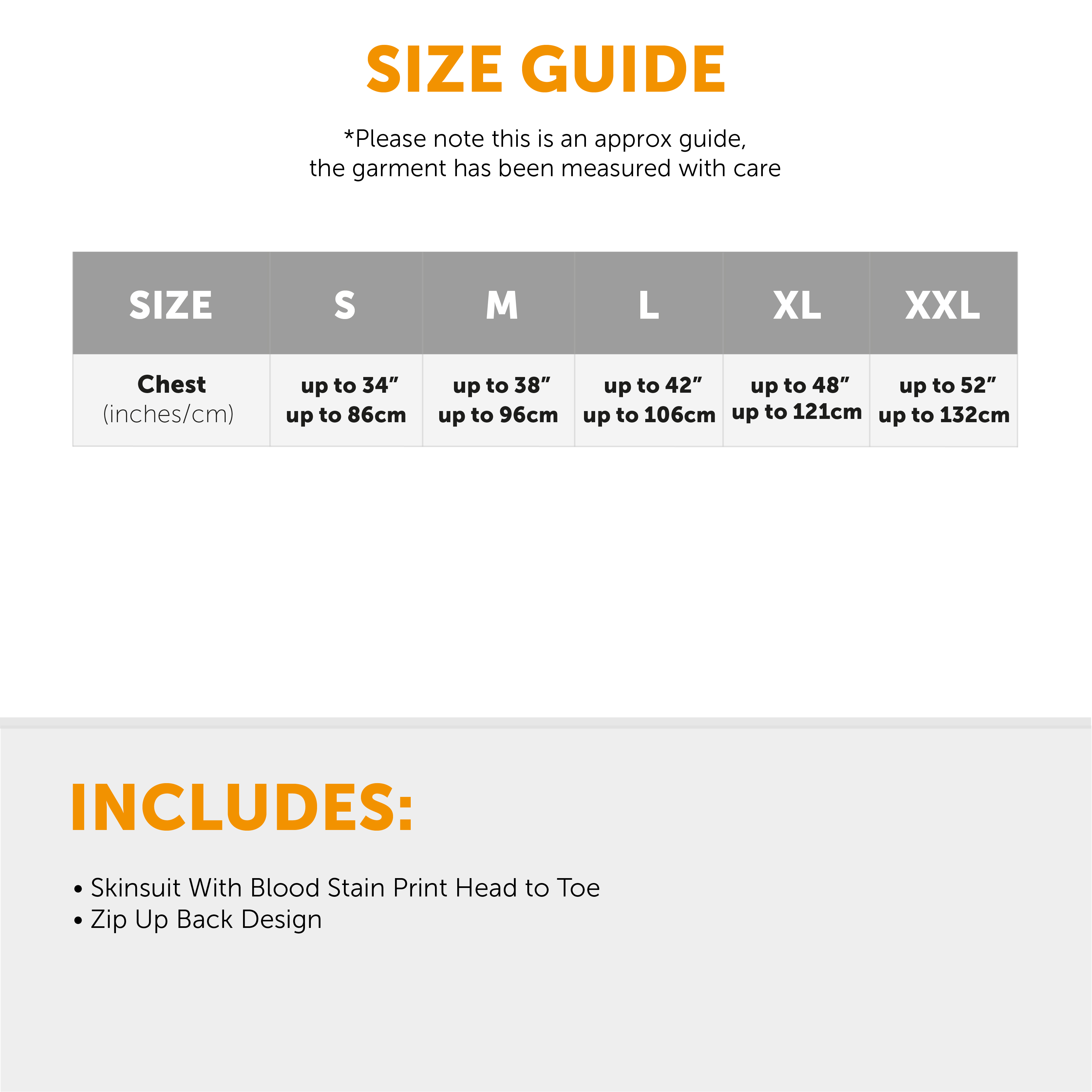 YOU ARE SURE TO STAND OUT AT ANY HALLOWEEN PARTIES AND EVENTS IN THIS BLOODY SKIN SUIT!