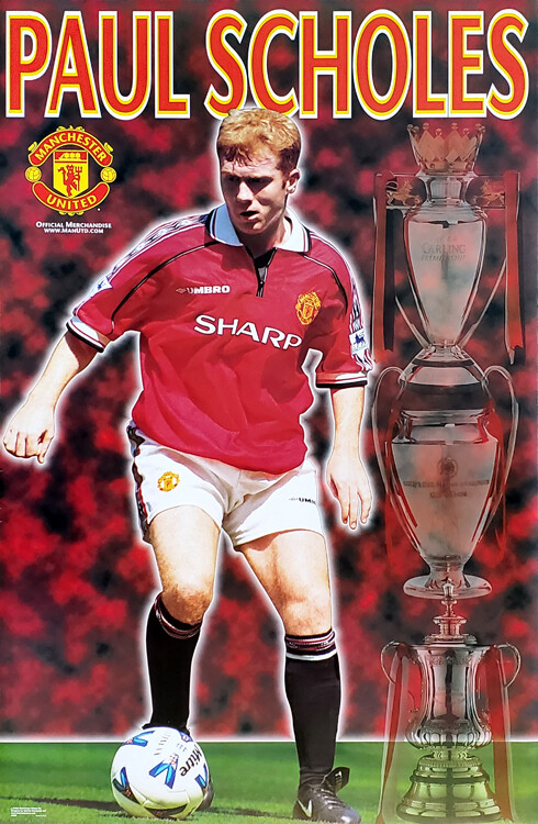Fantastic vintage classic action poster featuring United's legend himself, Paul Scholes! A tribute to his enormous contribution to the Treble Championship season of 1999 and beyond. Perfect for the wall of any fan, and a rare collector's item that won't last long! Limited quantity remains in our warehouse.