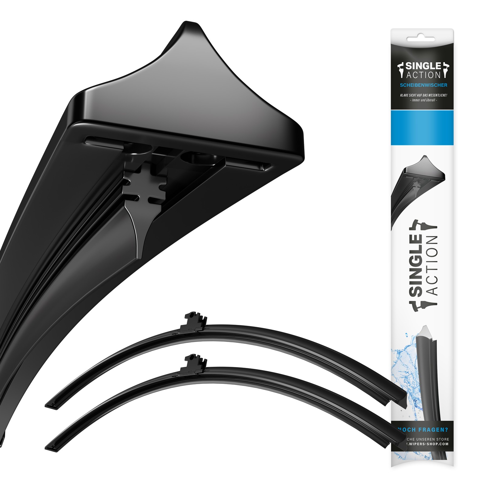 Optimierte Klarheit und erhöhter Schutz Mit unserem Single Action Scheibenwischer erleben Sie eine völlig neue Art der Scheibenreinigung, die Ihnen eine klare Sicht und somit eine verbesserte Sicherheit bietet. Durch die Verwendung eines einzigen hochwertigen Wischerblatts wird die Reinigungsleistung maximiert. Der Scheibenwischer entfernt nicht nur Regen oder Schnee effizient, sondern beseitigt auch hartnäckige Verschmutzungen wie Insektenreste gründlich. Neuheit: Im Gegensatz zu herkömmlichen Wischern, bei denen Dreck und Wischwasser oft Schlieren und Wischspuren hinterlassen, sind unsere Single Action Scheibenwischer darauf ausgelegt, eine klare Sicht ohne Kompromisse zu gewährleisten. Die einzigartigen Wischgummis sind langlebiger und widerstandsfähiger gegenüber intensivem Gebrauch. Zudem überzeugt das moderne und aerodynamische Design der Wischerblätter. Perfekt für jedes Fahrzeug Beim Kauf neuer Scheibenwischer ist es wichtig, dass diese perfekt zu Ihrem Fahrzeug passen. Wir stellen sicher, dass unsere Single Action Scheibenwischer für eine breite Palette von Automodellen geeignet sind. Dank unseres vielseitigen Adaptersystems können die Wischblätter problemlos an nahezu jedem Fahrzeugtyp montiert werden. Die Montage ist einfach und in kürzester Zeit erledigt. Die flexible Schiene und die ideale Verteilung der Druckpunkte gewährleisten, dass die Wischgummis perfekt auf der Windschutzscheibe aufliegen und ein optimales Reinigungsergebnis erzielen. Zudem sind sie äußerst langlebig und behalten ihre Form über einen langen Zeitraum bei.