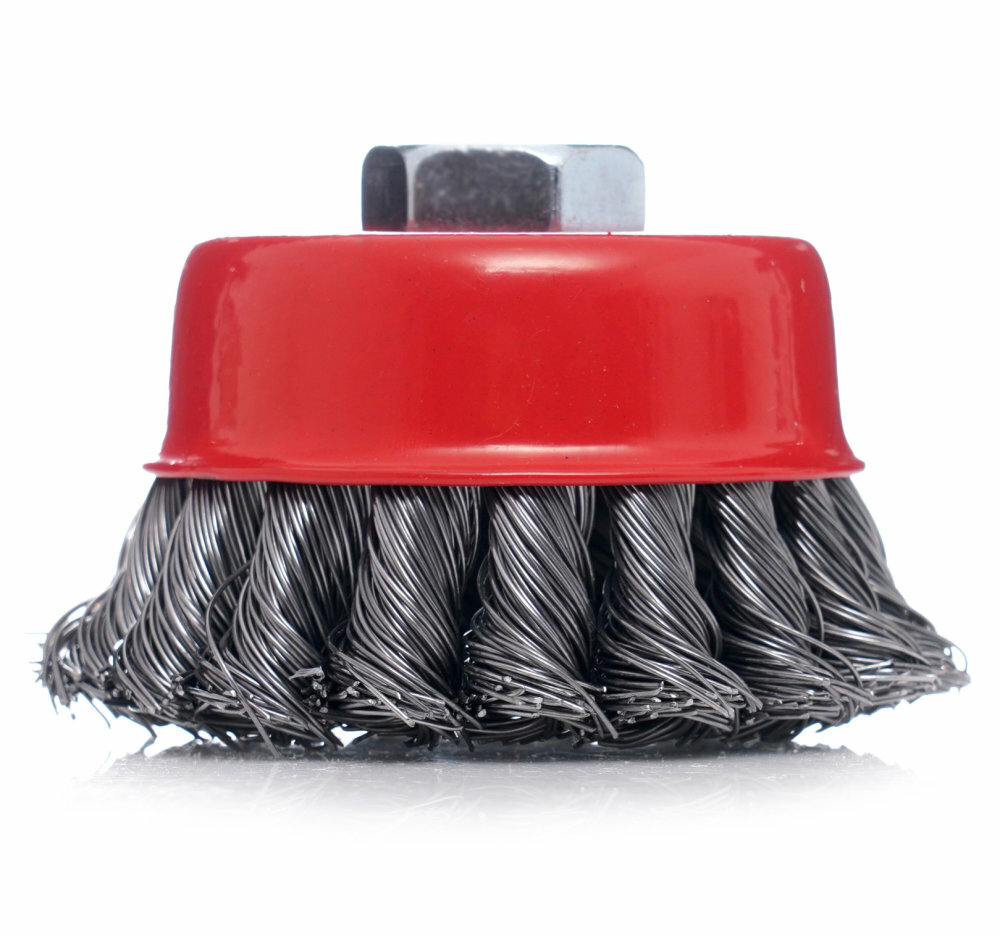 Vielseitigkeit: Diese Topfbürste ist sowohl mit Winkelschleifern als auch – mit passendem Adapter (nicht im Angebot enthalten) – mit Bohrmaschinen kompatibel.
