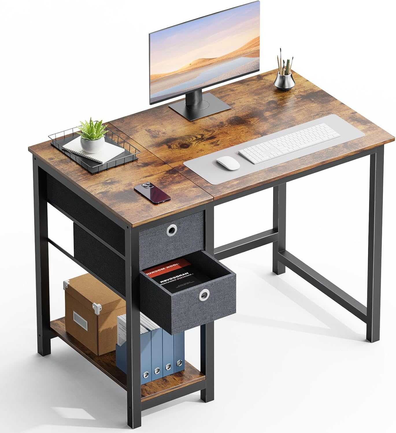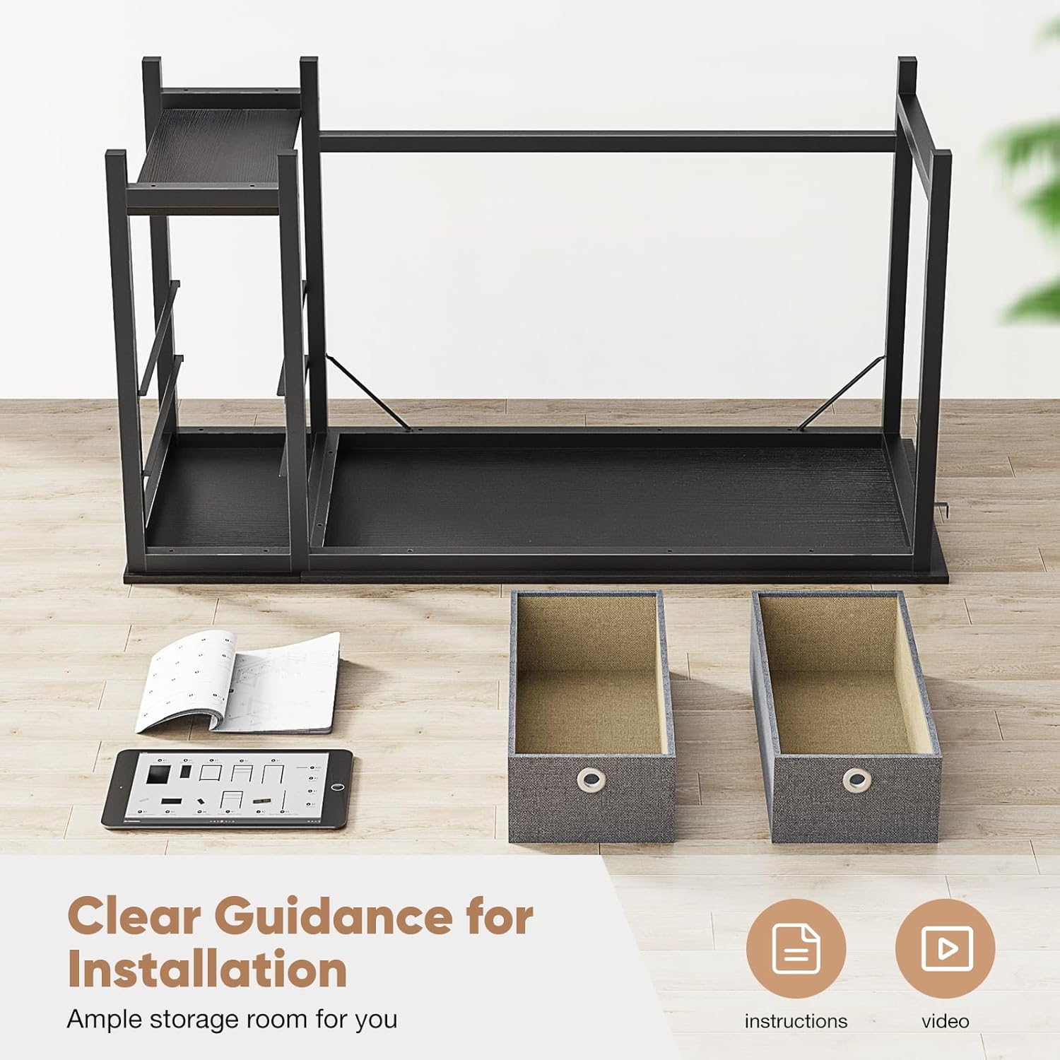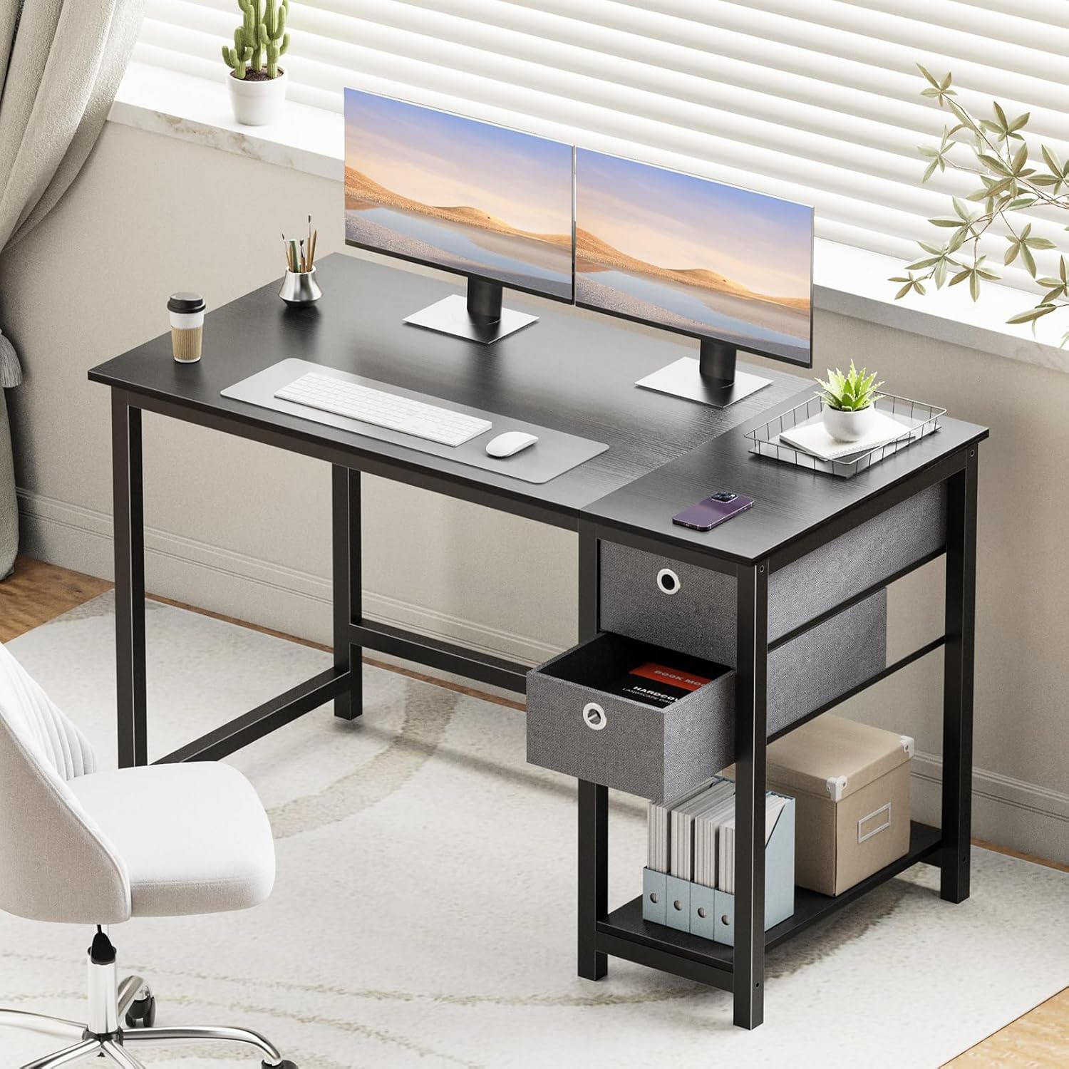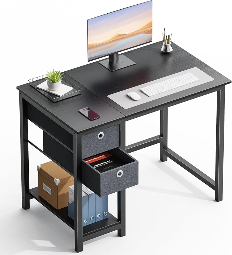 【Ample Storage Space】2-tier open drawers can accommodate office supplies, magazines, daily necessities, increasing the storage space under the desk and keeping the desktop clean and tidy. The desk also has hooks on the side for hanging headphones, umbrellas, and bags.