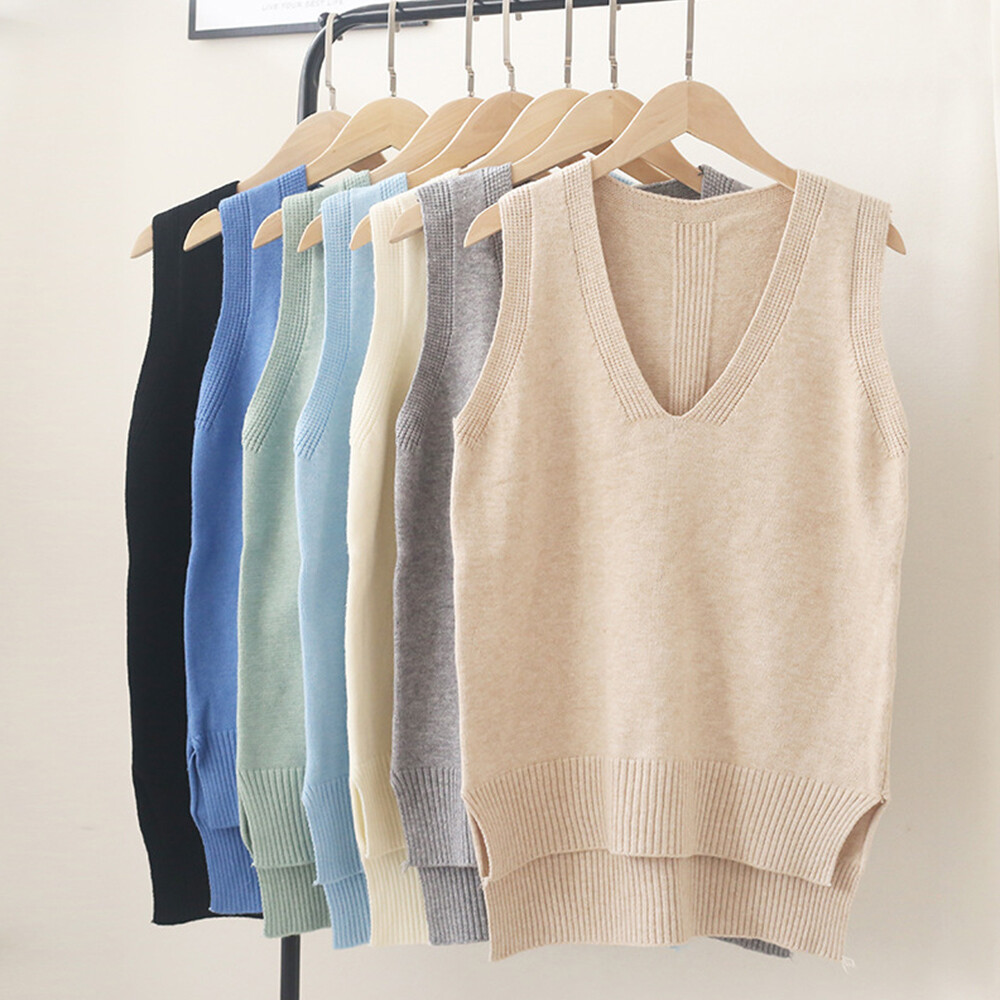 Knitted Jumper Vest Waistcoat Sweater Sleeveless Women V-Neck Tank Tops