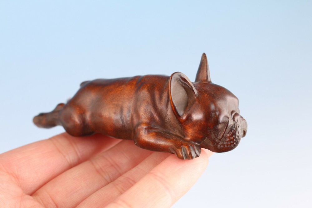 Lovely Chinese Boxwood Hand Carving Dog Figure Statue Hand Piece Gift